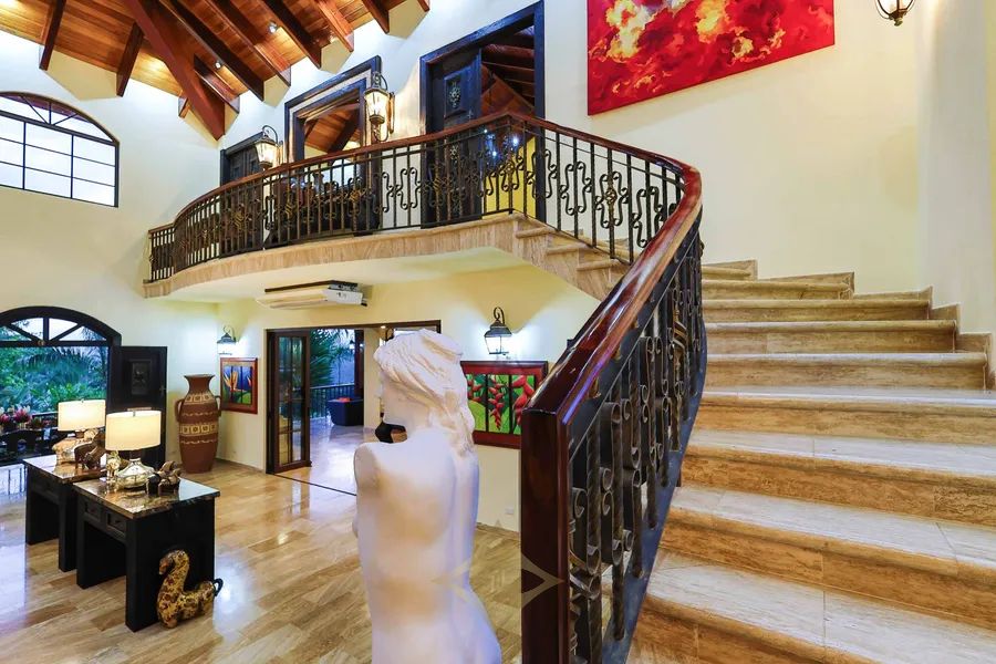 Interior construction features artisan ceilings throughout with exotic tropical woods such as Teca, Ron Ron, Cenisaro, Laurel del Atlantic, Guayacan, Surá, and Bamboo.
