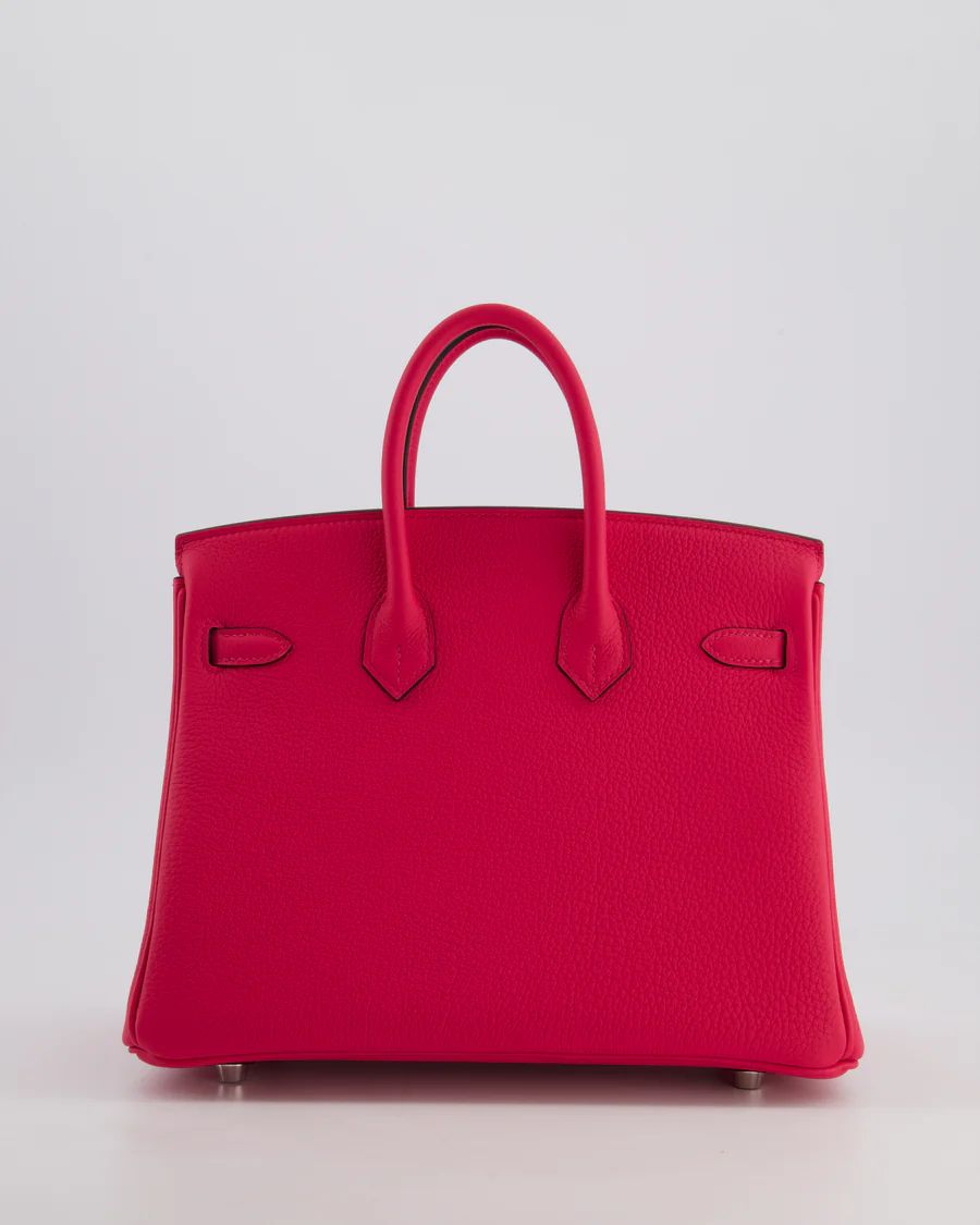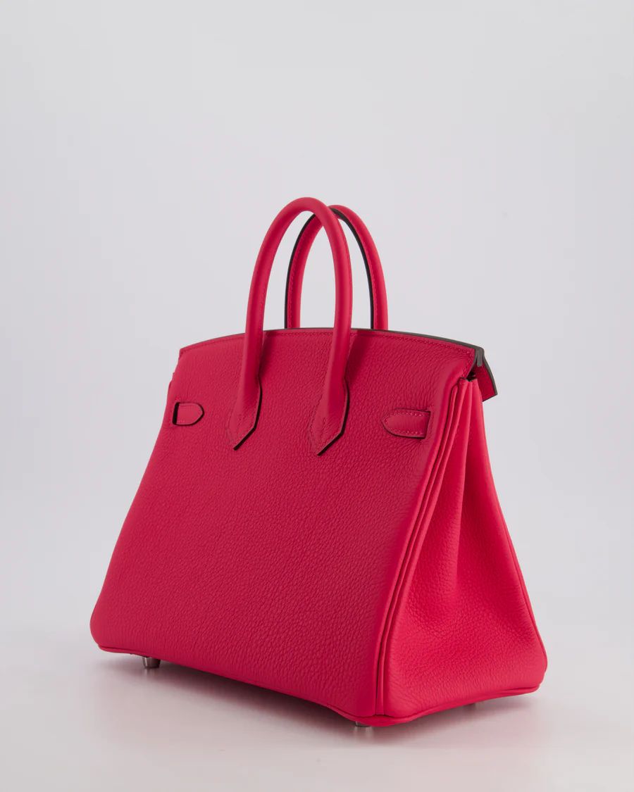 *RARE* HERMÈS BIRKIN 25 RETOURNE BAG IN ROSE MEXICO TOGO LEATHER WITH PALLADIUM HARDWARE PRICE: £23,450 Hermès Birkin 25 Retourne Bag in Rose Mexico Togo Leather with Palladium Hardware The bag is in store fresh condition with seals on the hardware Please see photos for more information on this item DETAILS Brand - Hermès Model - Birkin 25cm Retourne Materials - Togo Colour - Rose Mexico Hardware - Palladium Accompanied by the original dust bag, box, felt cover, lock, key, clochette and original redacted receipt Measurements – 25cm x 20cm x 13cm Stamp - K Year - 2025 Ref - 042615 We are not affiliated with the brands we sell. Please note that all of our items are pre-owned unless stated otherwise. By purchasing through us, you are contributing to an ethical and sustainable fashion future. All of our items come with an authenticity guarantee, and all sales are final. For deliveries outside the UK and EU, items are shipped DDU (Delivered Duty Unpaid), meaning any applicable duties or taxes are the responsibility of the customer. You are making great choices for the planet and for yourself, Love Sellier. ——— SELLIER KNIGHTSBRIDGE 6 Cheval Place, London, SW7 1ES, United Kingdom Tel:  +44 20 7581 2380 Email: shop@sellierknightsbridge.com