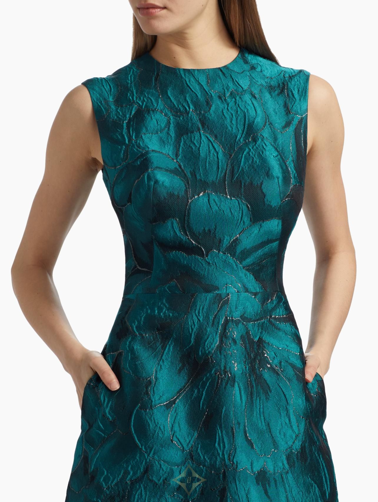 Reem Acra Floral Brocade Sleeveless A-Line Gown PRICE: $3,895 Details Finished in a regal floral brocade pattern, Reem Arca's stunning A-line gown highlights the sleeveless silhouette with a romantic jewel neckline and pleats at the full skirt. • Jewel neck • Sleeveless • Concealed back zip closure • 69% polyester/16% silk/8% polyacrylic/7% Lurex® metallic fibers • Lining: 100% polyester • Dry clean • Made in USA of imported fabric SIZE & FIT • Model measurements: 5'10" tall • Model is wearing a US size 4 ——— Saks Fifth Avenue (Saks & Company LLC) Marc Metrick (CEO) Address: 225 Liberty St FL 31 New York, NY, 10281-1089 United States Customer Service