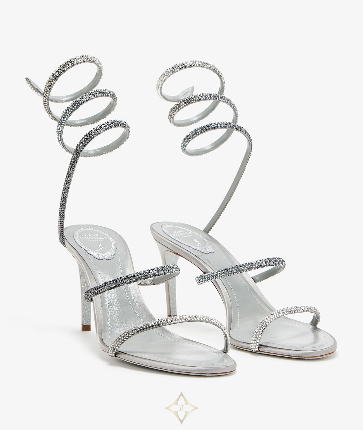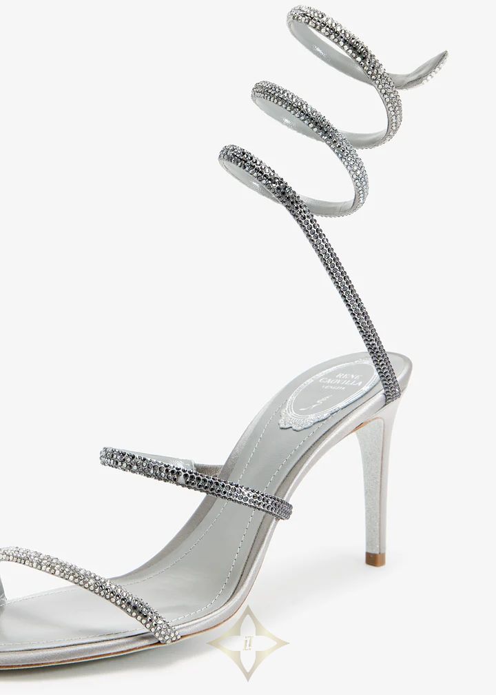Defined by a serpent-like strap that coils around the ankle, Rene Caovilla's Cleo sandals are the ultimate show-stopping pair. They're Italian crafted from crystal-embellished satin with a slim stiletto heel and the brand's signature glitter-infused outsole. Show off their unique design with a cocktail dress.