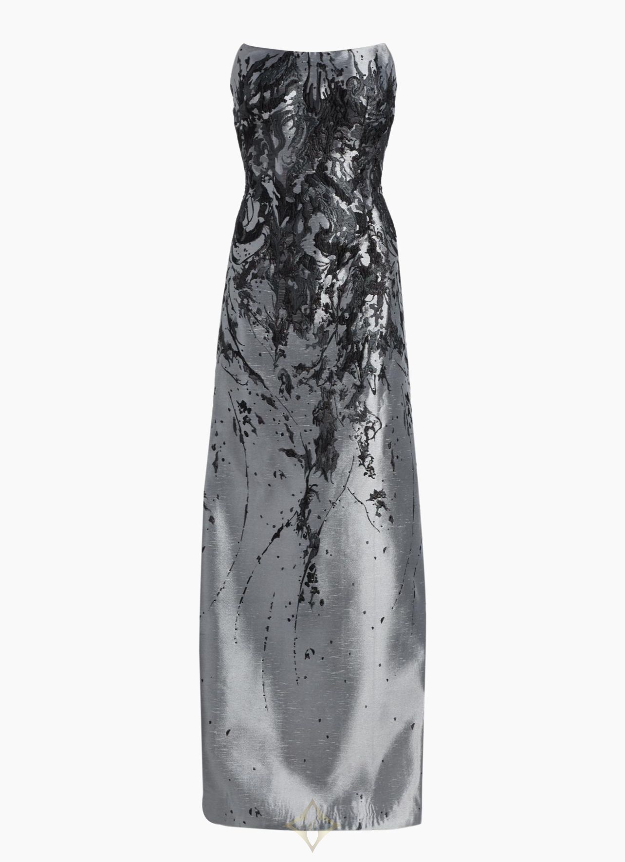 Gathered Brocade Strapless A-Line Gown