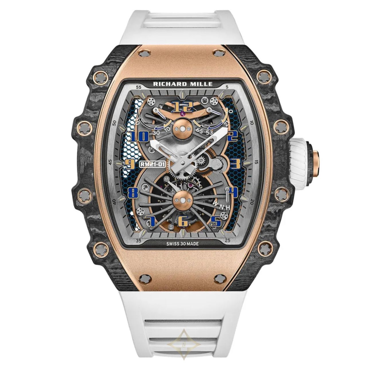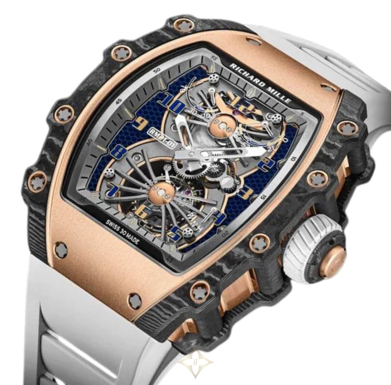 Step into the luxury dome in wristwatches by experiencing the Richard Mille RM 21-01 Tourbillon Aerodyne. This exquisite watch is designed especially for that kind of person who would like to invest in a highly functional, as well as elegant wrist accessory. The RM 21-01 features an 18-karat rose gold and carbon material that is quite prominent on the case to give it that luxury feel yet it is still strong. The rectangular and tonneau-shaped case of the watch measures 42. wide and 50.Lengths 192mm long by 68mm in width and 50. 12mm, this watch houses a wonderfully enigmatic skeleton-type dial through which the wearer is able to see the workings of this masterpiece.
