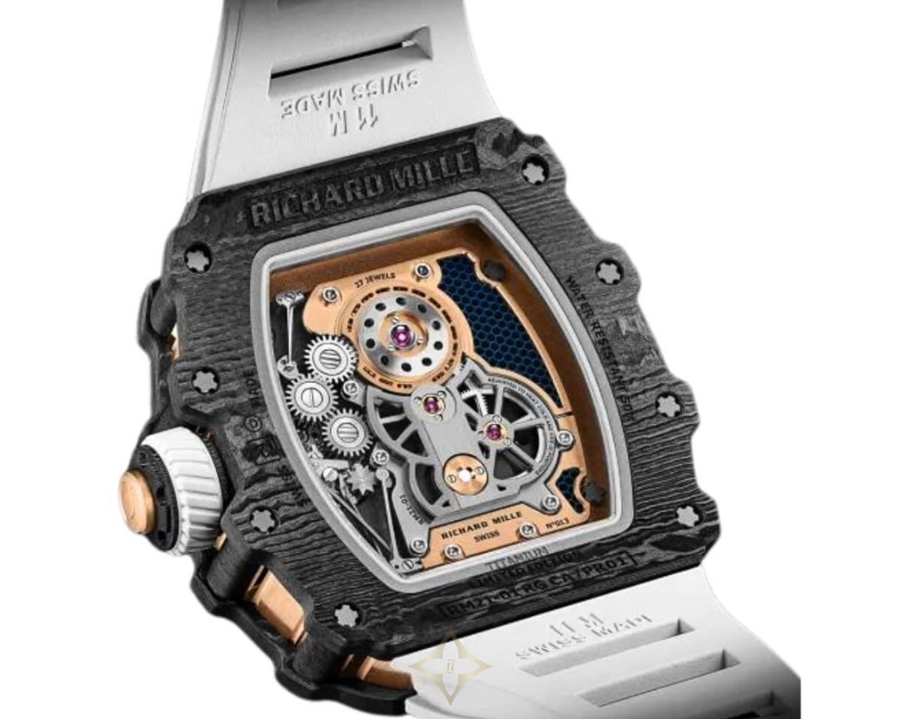 This is indeed a plus as it augments the modern look of the watch, and besides, it is a comfortable material to wear in the form of straps. The aesthetic appeal of the RM 21-01 Forbidden Tourist is matched only by the utility; with water resistance up to 50 meters.