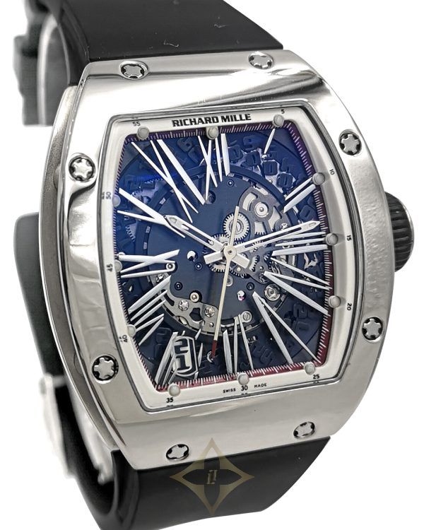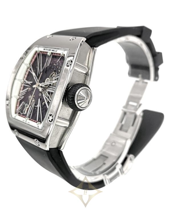 Richard Mille RM023 Skeleton Silver Rom Number Dial Black Rubber Strap Auto Men Watch