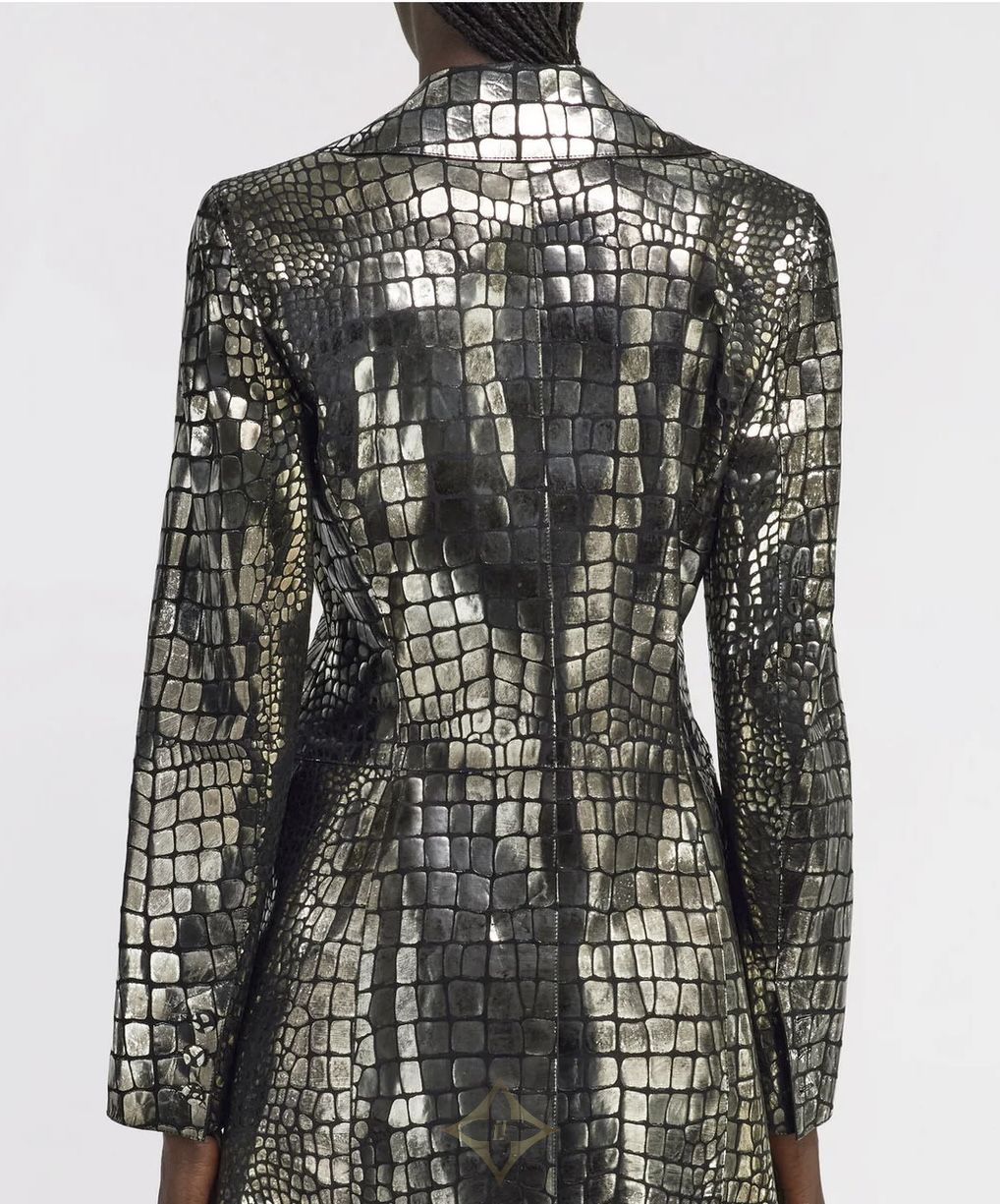 ✅ Bottega Veneta Double-Breasted Croc-Embossed Leather Coat | NY 🇺🇸