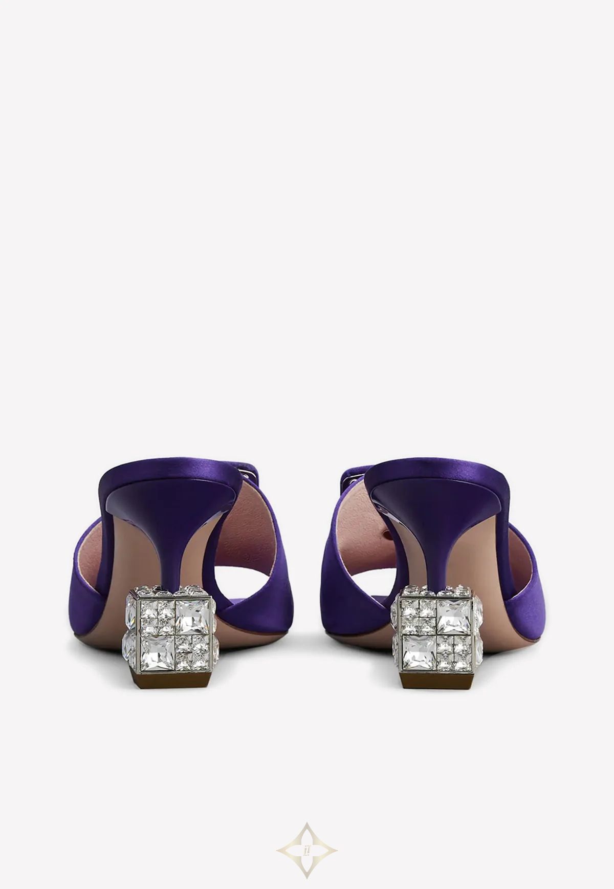 CUBE 75 CRYSTAL HEEL SATIN MULES