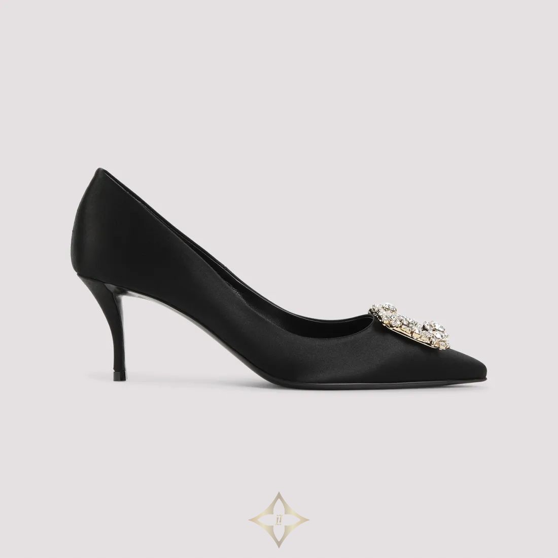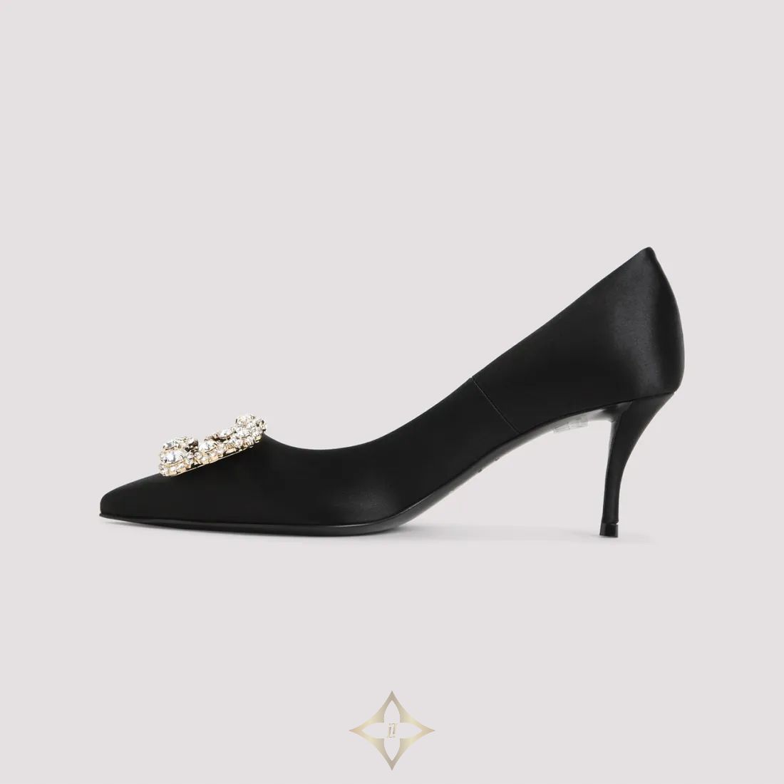 Roger Vivier Flower Strass 65 Black Viscose Pumps for Sale | Novara 🇮🇹