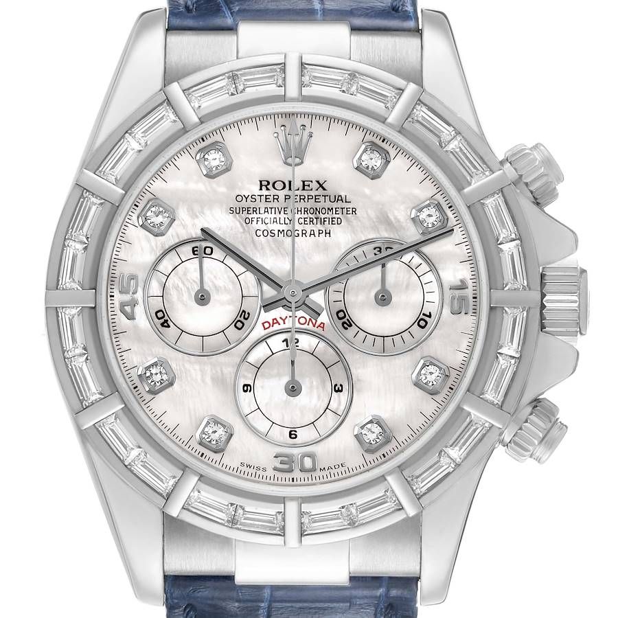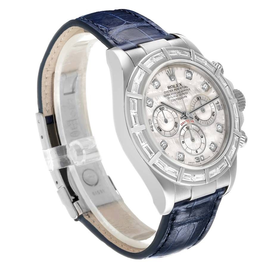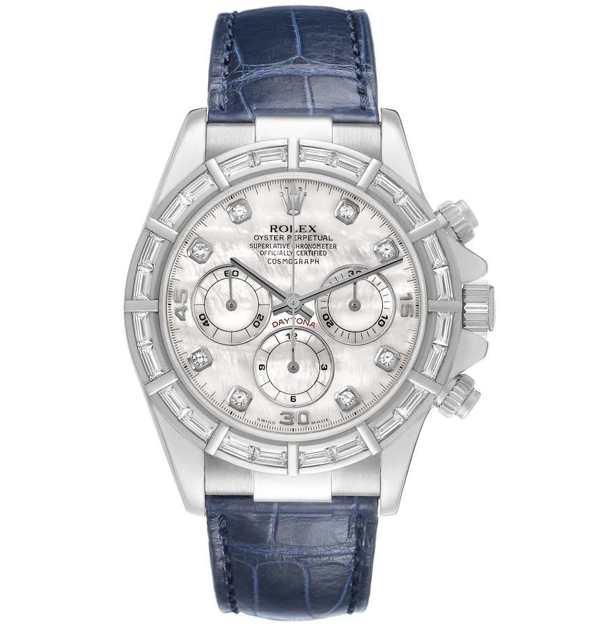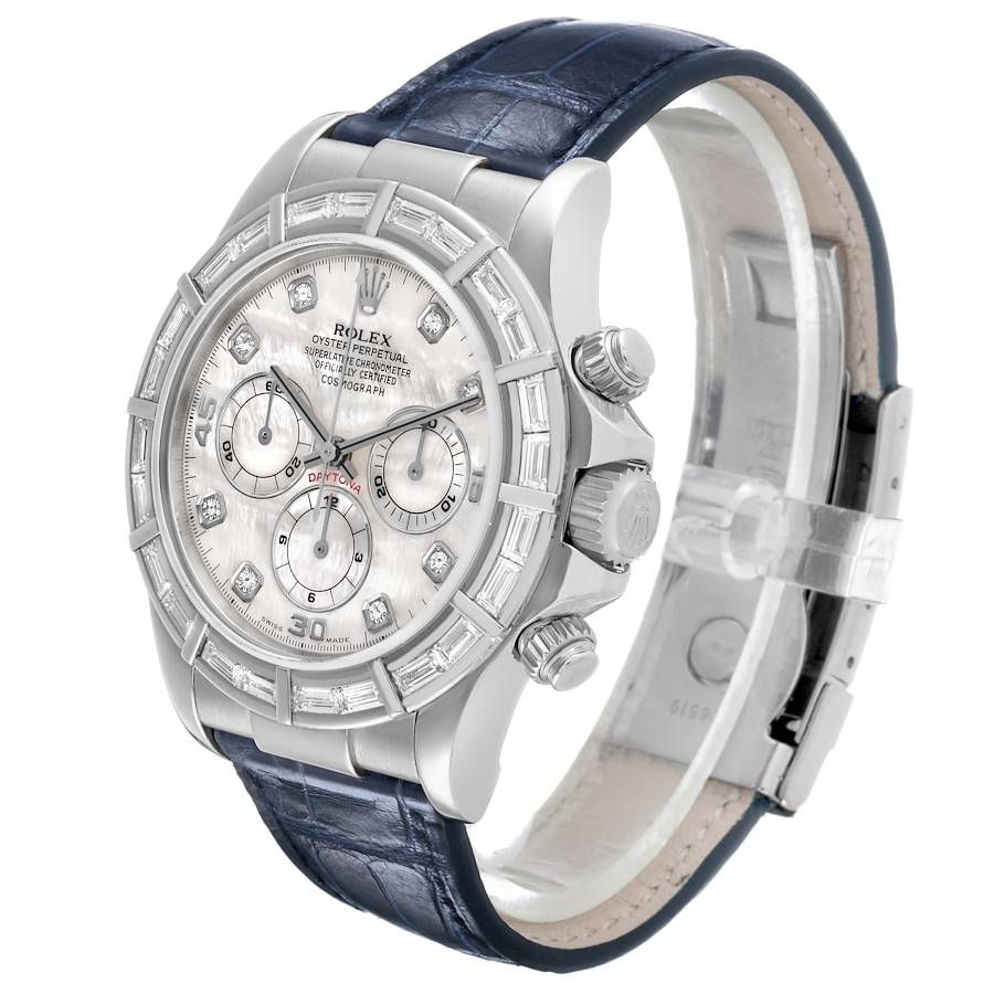Rolex Cosmograph Daytona (Reference 16589). A 40mm white gold diamond-set automatic wristwatch with chronograph. 1997-1998