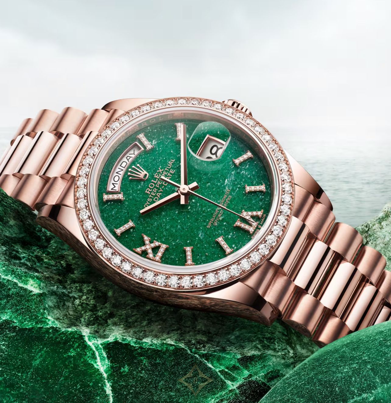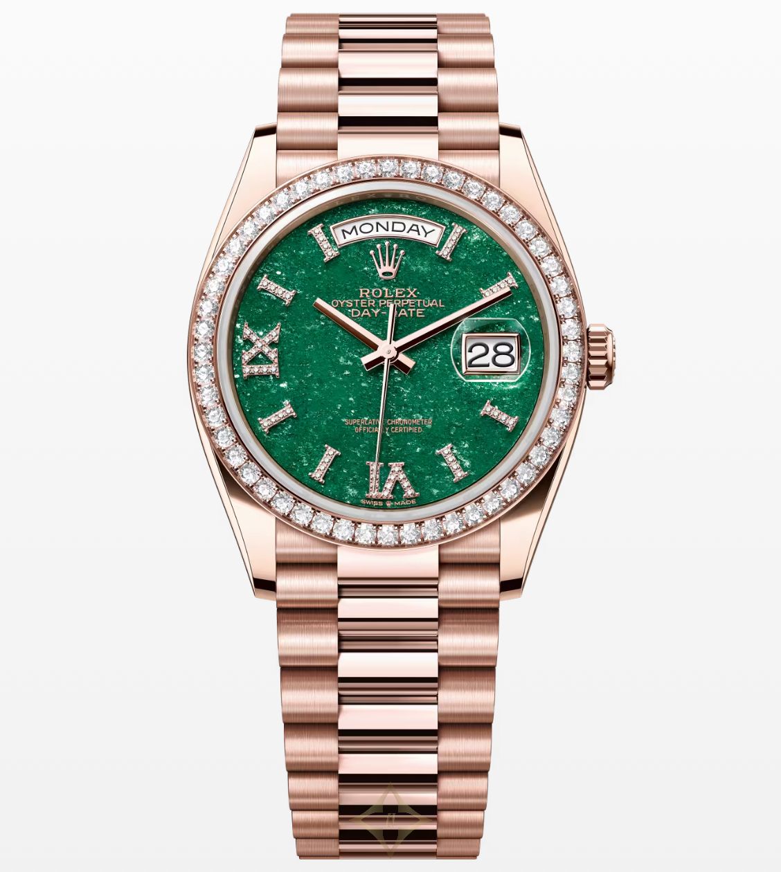 Rolex Day-Date 36 36mm Green Aventurine Diamond-Set Dial Diamond-Set Bezel President Bracelet - 128395TBR