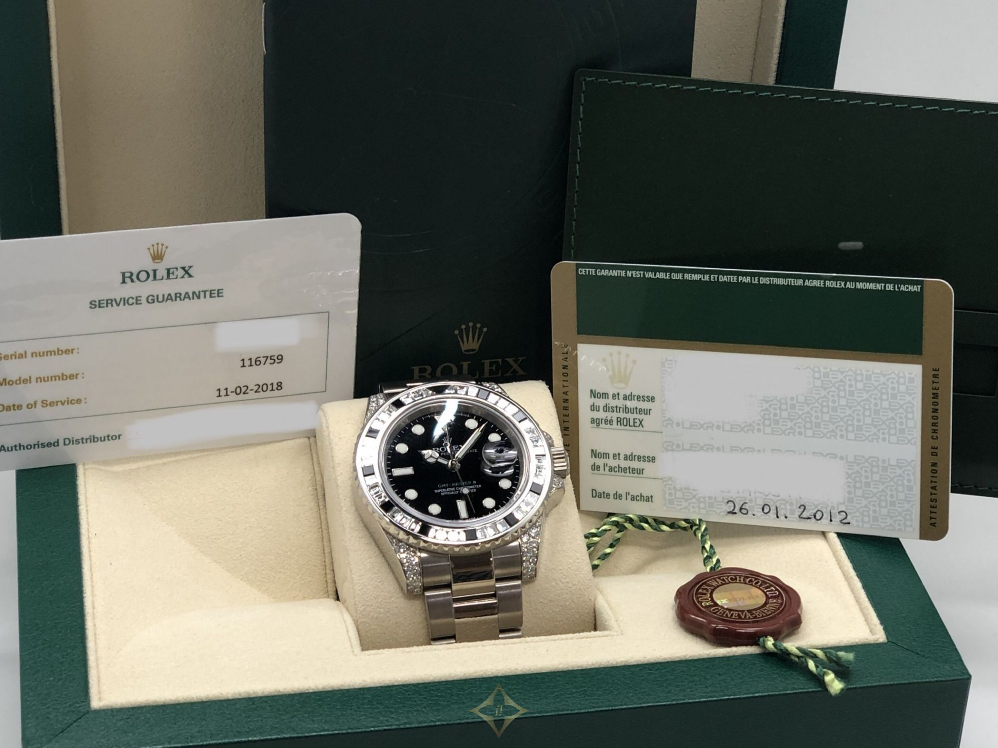 Rolex GMT-Master II 18k White Gold - SANR Black Sapphires And Diamonds - With Box And Papers - 116759SANR 2012