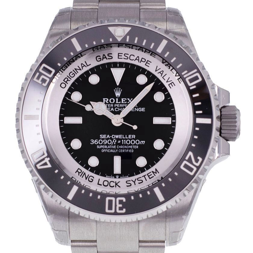 ROLEX Sea-Dweller DeepSea 63421 Year : 2022 | + Paper + Box Visible at : Bordeaux PRICE: 49,900 € SPECIFICATIONS Watch brand ROLEX Model Sea-Dweller Box Original Documents Original warranty, User manual, COSC certificate Bezel Ceramic Model case Titanium Dimensions 50 mm movement Certified Self-Winding Movement (COSC Organization) Crystal Sapphire Dial (dominant color) Black Bracelet Titanium Maximum wrist circumference 19 cm Buckle Simple folding Sealing >1640 ft Crown Screwed Manufacturer Ref. 126067 Guarantee Manufacture until 10-10-2027 Description Waterproof at 11,000m. Never worn. ——— Boutique CRESUS - Paris à MATY Opera 4 Pl. de l'Opéra, 75002 Paris, France Phone: +33 1 40 20 16 84 WhatsApp: +33 4 72 32 20 00 Email: contact@cresus.fr