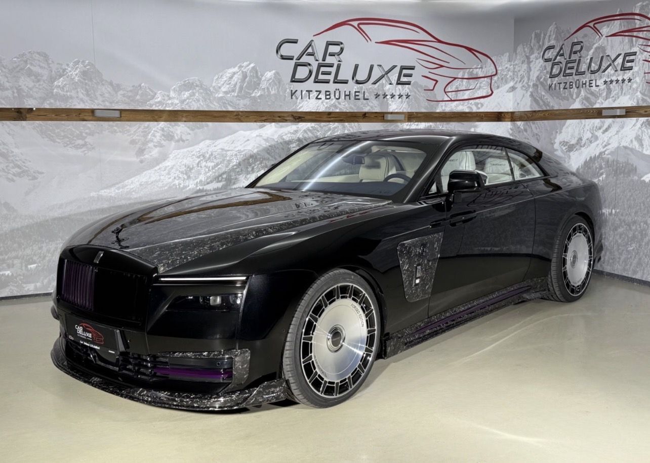 Rolls-Royce Spectre Mansory Masterpiece "Tailored Purple" PRICE: €647,360 (€544,000 - Net 19,00% VAT) SPECIFICATIONS Vehicle condition: New vehicle, Accident-free Category: Sports Car/Coupe Model range: Mansory Trim line: Mansory Masterpiece Availability: Now Origin: EU edition Mileage: 390 km Power: 430 kW (585 hp) Drive type: Electric motor Other energy source: Electricity Energy consumption (comb.)-- KWh/100km CO, emissions (comb.) 0g/km Number of Seats: 4 Door Count: 2/3 Transmission: Automatic Climatisation: Automatic climatisation, 4 zones Parking sensors: Front, 360° camera, Rear Airbags: Front and Side and More Airbags Colour (Manufacturer): Black Diamond R32 Colour: Black Metallic Interior Design: Full leather, Other DESCRIPTION Rolls Royce Spectre Mansory ! Sofort verfügbar ! Mansory Masterpiece "Tailored Purple "- Launch Package - Starlight Dach und Türen - Netto Export € 544.000.00 • - Exterieur: Black Diamond • - Interieur: Grace White • Spectre-Paket • Shoulder-Coachline • 23" 7-Speichen polierte Felgen • Belüftete Massagesitze • Dynamische maßgeschneiderte Uhr • Beleuchtete Faszie • Sternenlichttüren • Leder-Finishing-Paket • Zweifarbiges Lenkrad • Shooting Star-Headliner • Klavierschwarz • VIN-Plakette • Paket aus poliertem Edelstahl • Rolls-Royce-Audio • Mansory Umbau Forged Carbon mit akzenten „Tailored Purple“ • RSP210001 – Motorhaube • RSP595751 – Seitenschweller mit Logo • RSP102841 – Frontlippe • RSP802881 – Heckdiffusor mit Bremslicht • RSP102161 – Lufteinlass-Splitter • RSP640841 – Dachspoiler • RSP131871 – Kotflügelabdeckung vorne • Mansory Masterpiece • RSP900101 – MANSORY Tieferlegungsfahrwerk • RSP395351 – Einstiegsleisten mit beleuchtetem „MANSORY“-Logo • RSP340150 – Kopfstützenkissen-Set „MANSORY“ – Maßanfertigung in „Tailored Purple“ • RSP367759 – Exklusive Velours-Fußmatten „MANSORY“ – Maßanfertigung in „Tailored Purple“ • RRW456321 – Tür-Willkommensbeleuchtung mit „MANSORY“-Logo • FD1524103612 – Vollgeschmiedetes Rad 10x24 ET 36 in Schwarz Diamant • RSPFD15525 – Distanzscheiben: VA 5 mm / HA 25 mm, 4-teilig • TPM – Reifendruckkontrollsystem • Reifen: 295/30-24 • Lackierung "Blackline" mit Akzenten "Tailored Purple" - Exterieur: Black Diamond - Interieur: Grace White • Spectre Package • Shoulder Coachline • 23" 7 Spoke Part Polished Wheel • Ventilated Massage Seats • Dynamic Bespoke Clock • Illuminated Fascia • Starlight Doors • Leather Finishing Pack • Two Tone Steering Wheel • Shooting Star Headliner • Piano Black • VIN Plaque • Polished Stainless Steel Package • Rolls Royce Bespoke Audio • Mansory conversion Forged Carbon with "Tailored Purple" accents • RSP210001 – Front bonnet • RSP595751 – Side skirts with logo • RSP102841 – Front lip • RSP802881 – Rear diffuser with brake light • RSP102161 – Air intake splitter • RSP640841 – Roof spoiler • RSP131871 – Front fender panel • Mansory Masterpiece • RSP900101 – MANSORY lowering suspension • RSP395351 – Entrance panels with illuminated “MANSORY” logo • RSP340150 – Headrest pillow set “MANSORY” – custom-made in “Tailored Purple” • RSP367759 – Exclusive velour floor mats “MANSORY” – custom-made in “Tailored Purple” • RRW456321 – Door welcome lights with “MANSORY” logo • FD1524103612 – Fully forged wheel 10x24 ET 36 in black diamond • RSPFD15525 – Wheel spacers: FA 5 mm / RA 25 mm, 4-piece set • TPM – Tyre pressure monitoring system • Tyre: 295/30-24 • "Blackline" paint finish with "Tailored Purple" accents ——— Car Deluxe Kitzbühel Pass-Thurn Straße 22-24, A-6372 Oberndorf in Tirol 6372, Austria Email: info@car-deluxe.at WhatsApp: +43 664 4585466 Phone: +43 664 4585466