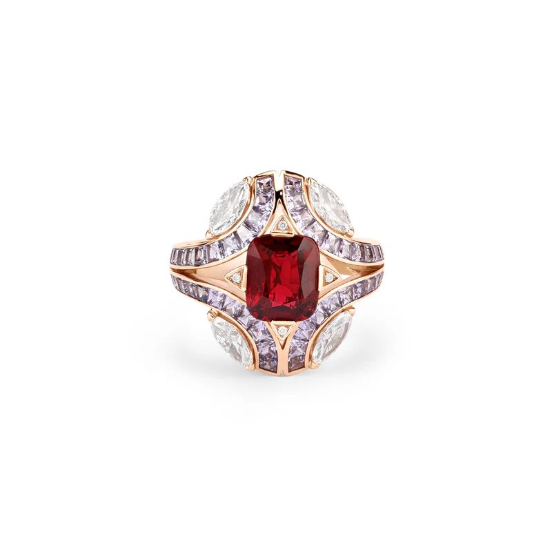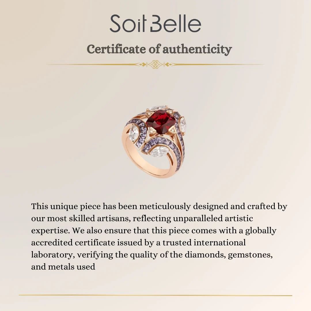 ROSE GOLD DIAMOND RING WITH VIVID NATURAL SPINEL - 18K LUXURY BY SOIT BELLE
