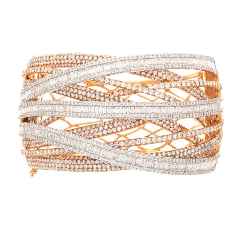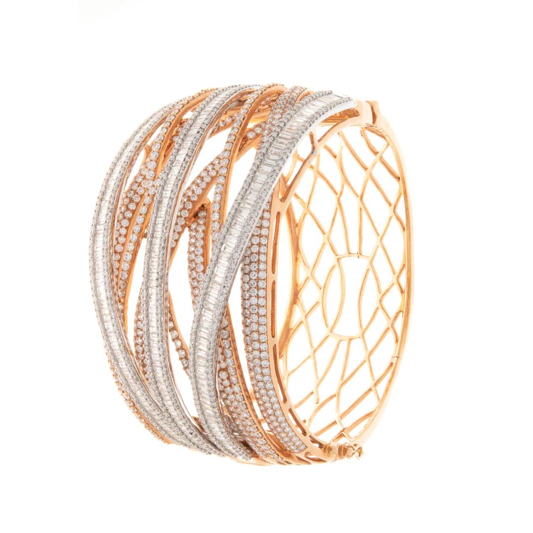 ROSE GOLD OVERLAPPING DIAMOND BANGLE – FLUID ELEGANCE, MODERN SPARKLE