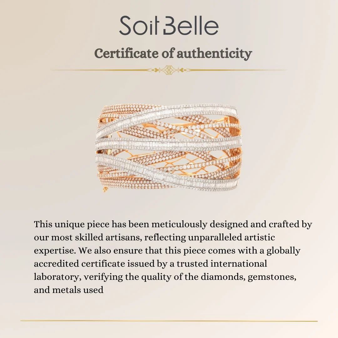 Indulge in refined beauty with the Rose Gold Overlapping Diamond Bangle. Crafted in warm 18K rose gold (750/1000), it adds a radiant glow to your collection.