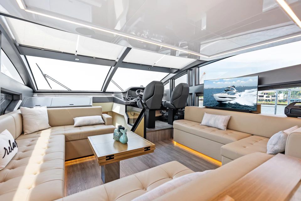 The flybridge is a true standout, extending nearly the full length of the main deck and offering multiple distinct spaces including a sunny lounging area to shaded spaces for dining, entertaining, and navigation. This layout includes a helm station, wet bar, BBQ, and versatile seating that makes the most of every corner. Forward, the foredeck lounge complements the flybridge with large sunpads and comfortable seating. Together, these outdoor areas make SCOTT FREE exceptional for entertaining or unwinding at sea.