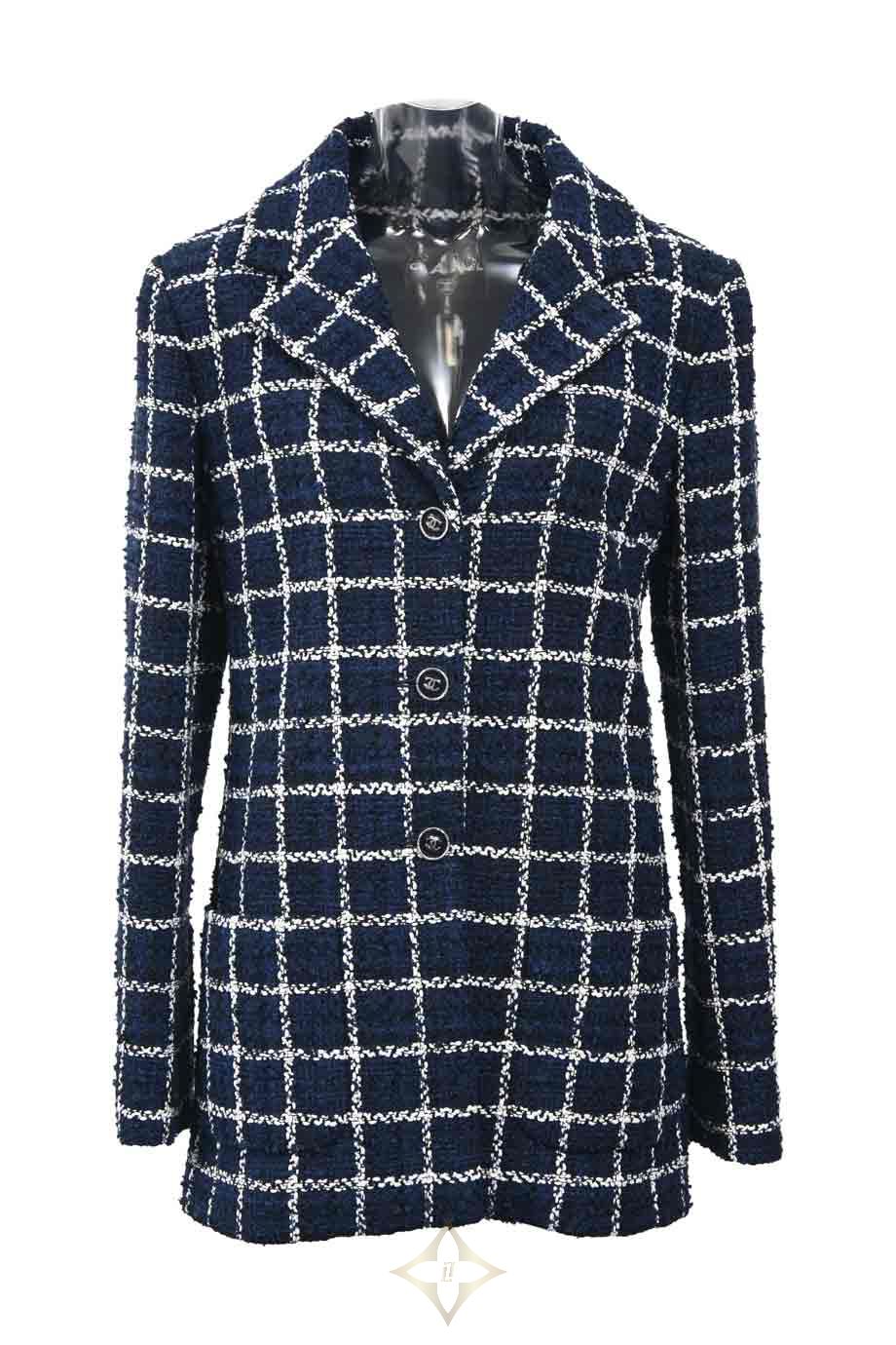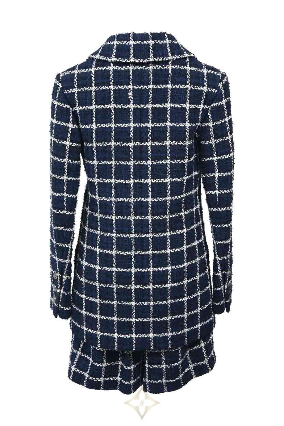 Chanel Two-tone windowpane check cotton-blend bouclé tweed two-piece short suit with Coco Mark buttons PRICE: HK$37,800.00 Size: FR36 Size Guide Condition: Hardly Worn Colour: Blue | White Product Code: WW46863 Product Details Jacket – FR Size 36: Front single-breasted button fastening. Fully lined. New with tag. Shorts – FR Size 38: Elasticated waist. Fully lined. Hardly worn. Materials: Cotton Original Packaging: Tags Season | Year: Spring Summer 2024 Location: HUB Seller: KOKO ——— HULA Boutique Shop C, Ground Floor 56-58 Hollywood Rd, Central, Hong Kong Email: hello@thehula.com Tel: +852 2544 1200 WhatsApp: +852 6290 2106