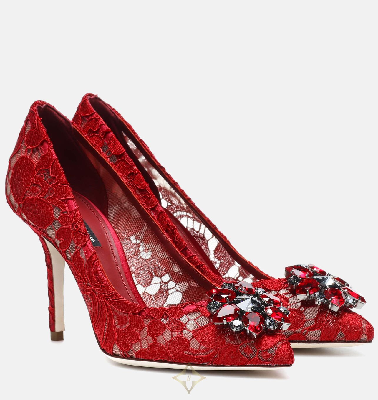 We predict that these rich ruby-red Dolce & Gabbana Bellucci pumps will inject an amorous air into your footwear edit. This striking pair has been crafted in Italy and forms part of the label's new "Rainbow Lace" collection, and has been finished elegantly in ornate taormina lace, with bejeweled Swarovski crystal clusters on the toes. Wear yours as a majestic finishing touch to any ensemble, though they'll pair perfectly with the label's rose-printed pieces.