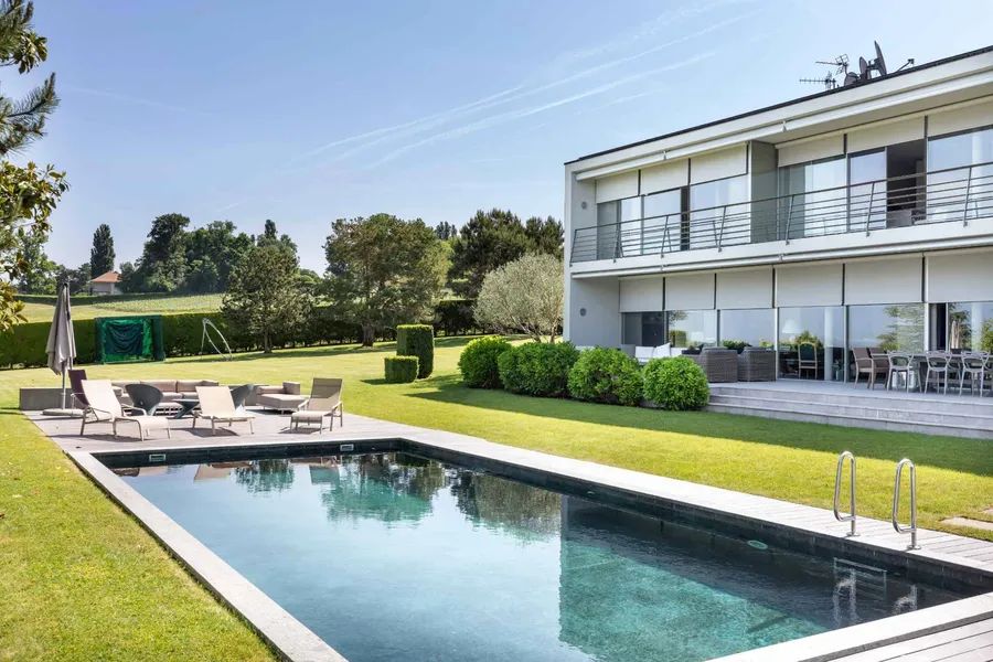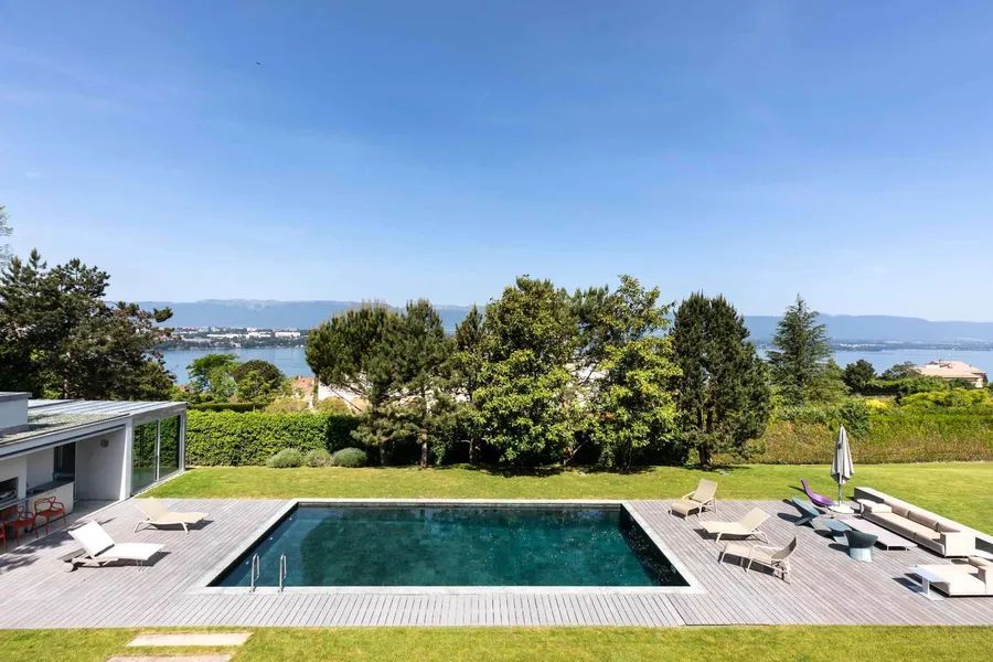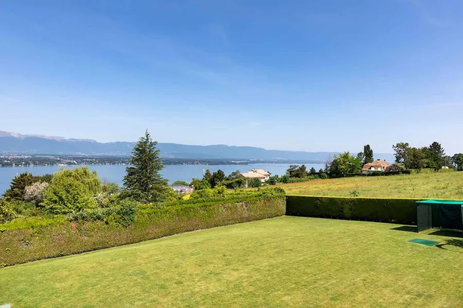 Located in a confidential dead end of the prestigious municipality of Cologny, this contemporary-inspired property, built about ten years ago, is perfectly located on a flat plot of about 3,320 m².