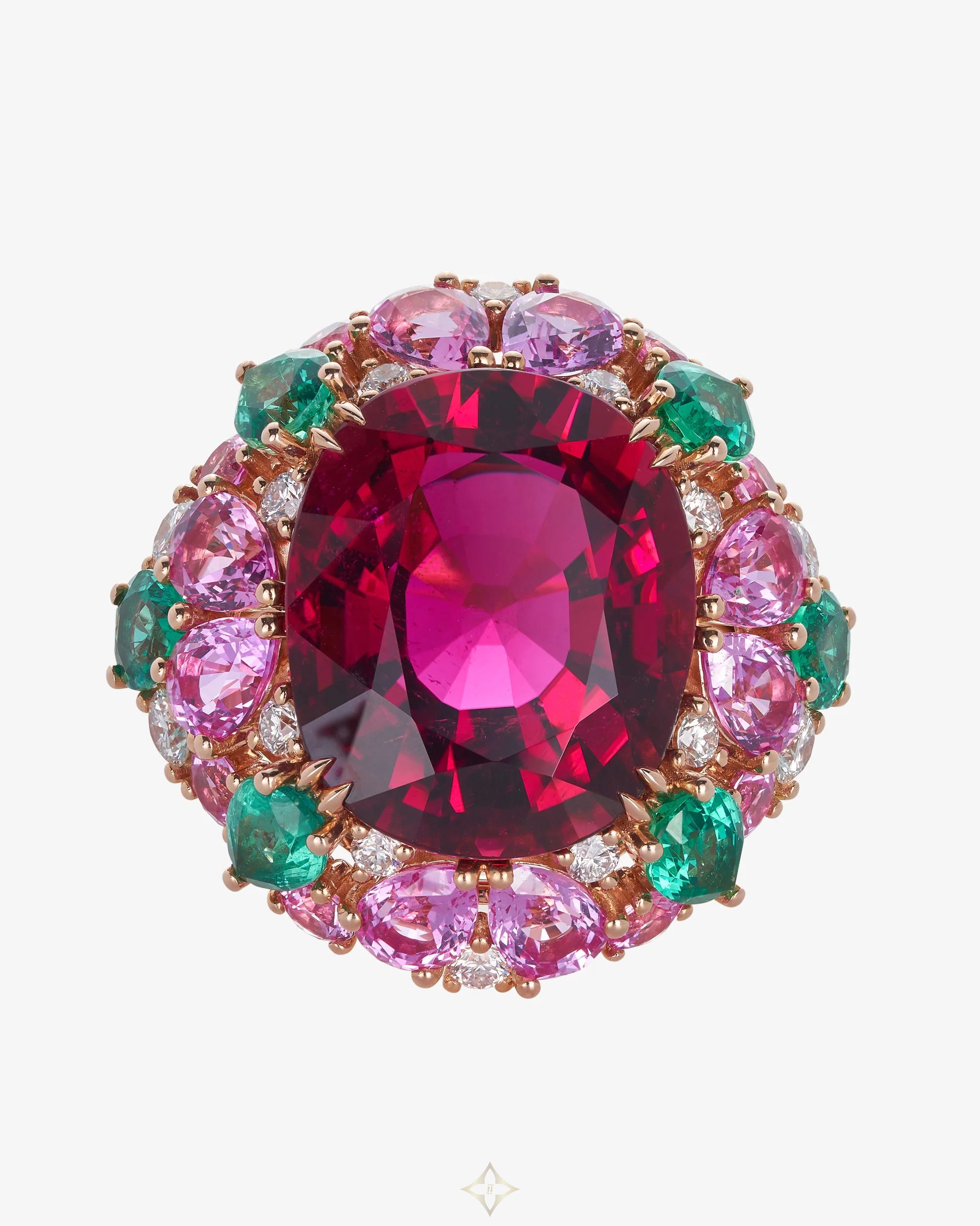 Rubellite Flower Ring Regular price $92,500.00 AUD Description & Details 18 Karat Rose Gold Rubellite Flower Ring Gemstone details: 34 = 0.73ct GH VS Round Brilliant cut Diamonds 6 = 1.74ct Pear Shape Emeralds 16 = 3.98ct Pear Shape and Round Brilliant Cut Pink Sapphires 1= 12.99ct Cushion Rubellite Size: 54 Crafted in 18 Karat Rose Gold. Reference: 061145 ——— McKinney's Jewellers Shop 34, 1000 Ann Street, Fortitude Valley, Brisbane, QLD 4006 Australia Phone: +61 7 3257 2222 Email: hello@mckinneys.com.au