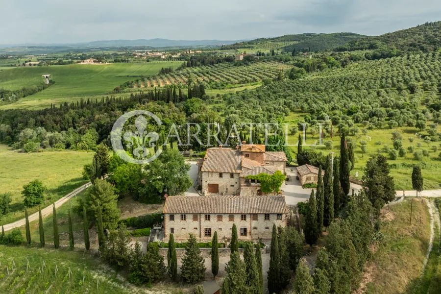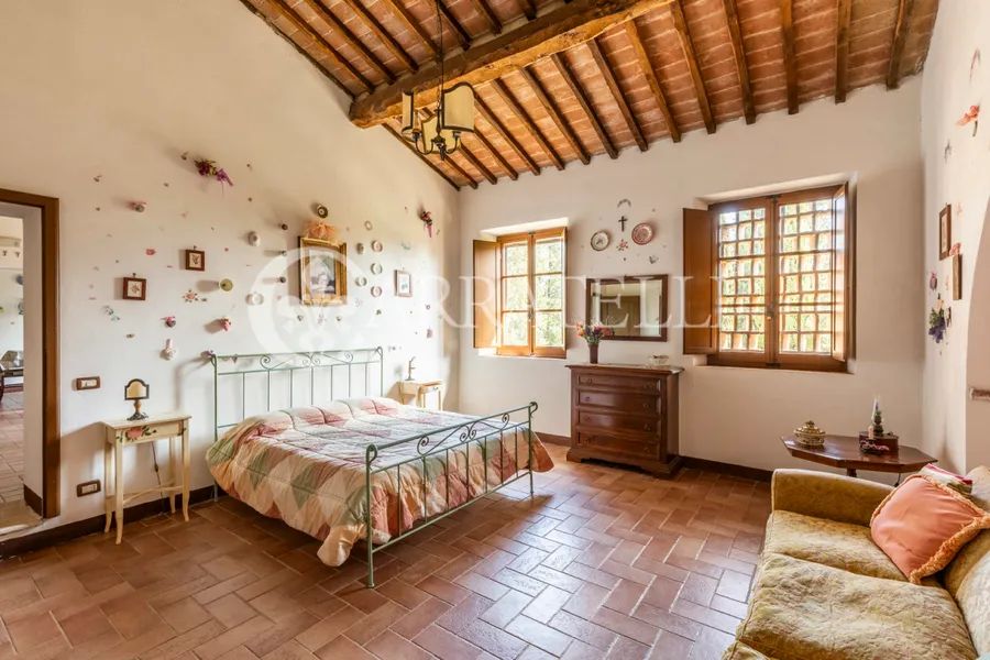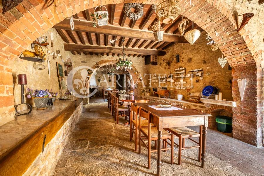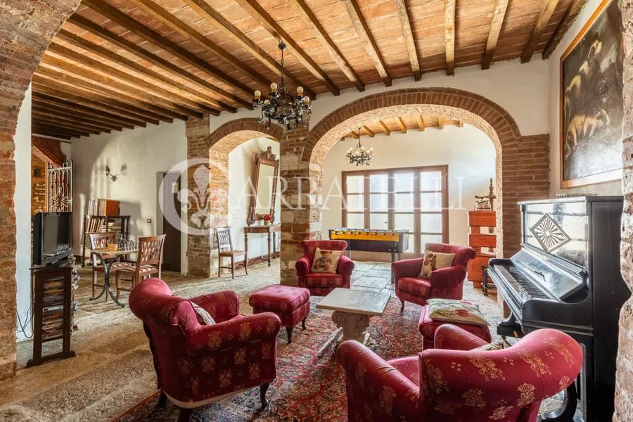 Once known as a spa resort, the prestigious property stands on the highest point of the surrounding hills and is divided into two different groups of buildings organized into multiple independent residential units. A fabulous avenue of cypress trees leads to the first group of buildings where the 18th-century manor house is located, completely in need of renovation. Once the site of a convent and later a hotel. Three different apartments with a variety of technical rooms, cellars and garages, the private oil mill with adjoining large olive store. Another completely renovated apartment, current home of the owners and the delightful private chapel, dating back to 1200. About 200 meters away is the second block of buildings, consisting of other delightfully landscaped and finished farmhouses, used for agritourism accommodation and hosting private and corporate events. A small hamlet, consisting of independent apartments with common areas for recreation and convivial moments. The 5 apartments, for a total of 560 square meters and 35 beds, each have independent entrances, are very spacious and with attention to detail, furnished with fine furniture and a touch of creativity that makes them unique and welcoming. On the ground floor of the main farmhouse, where once were the stables, the large and cozy hobby rooms, lounges with fireplace, billiard room and dining room.