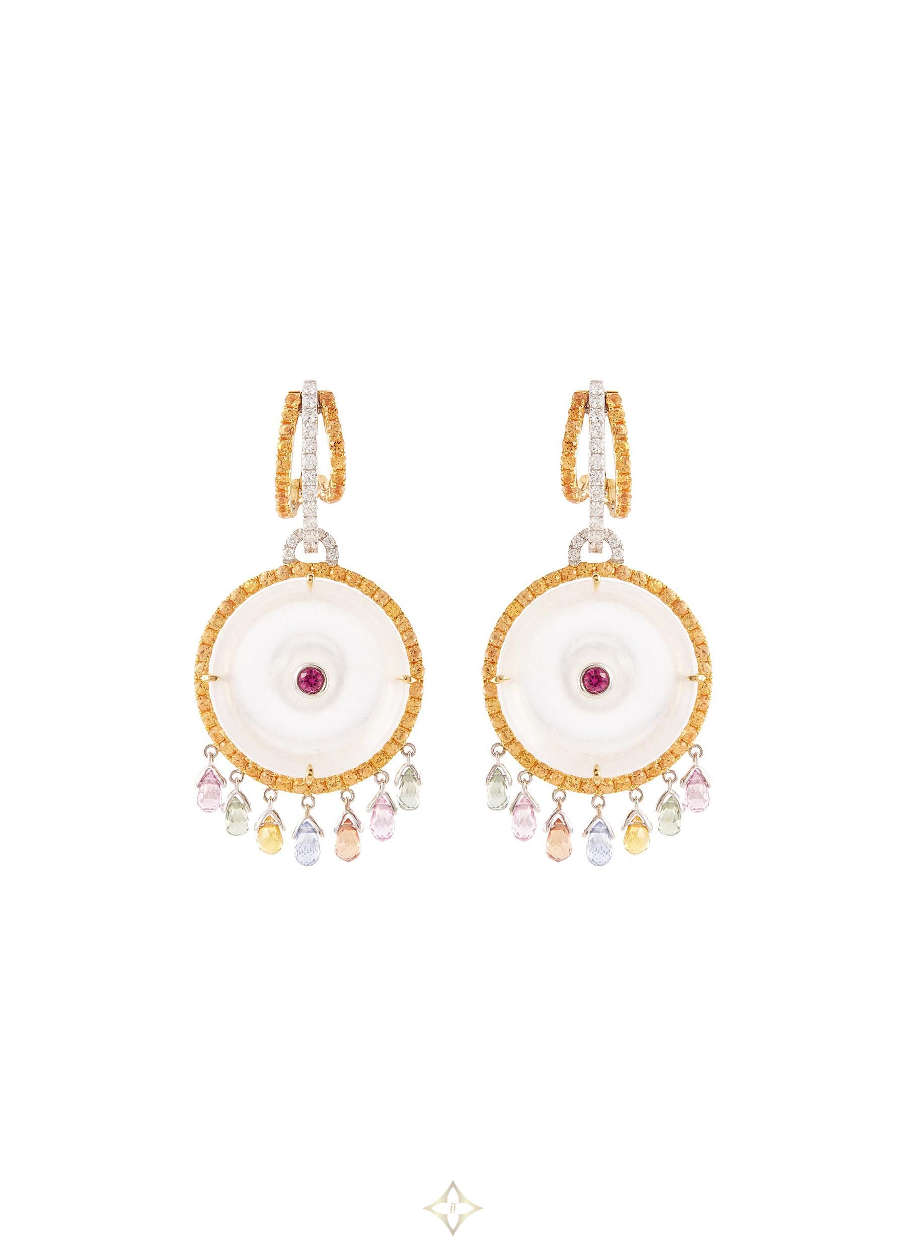 DIAMOND SAPPHIRE JADEITE 18K GOLD EARRINGS
