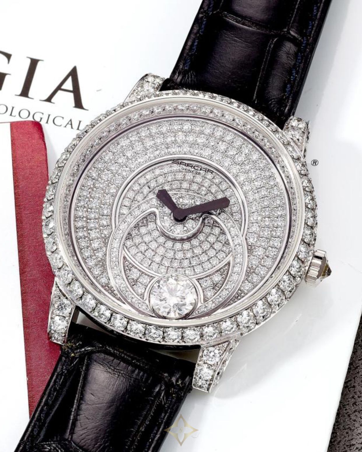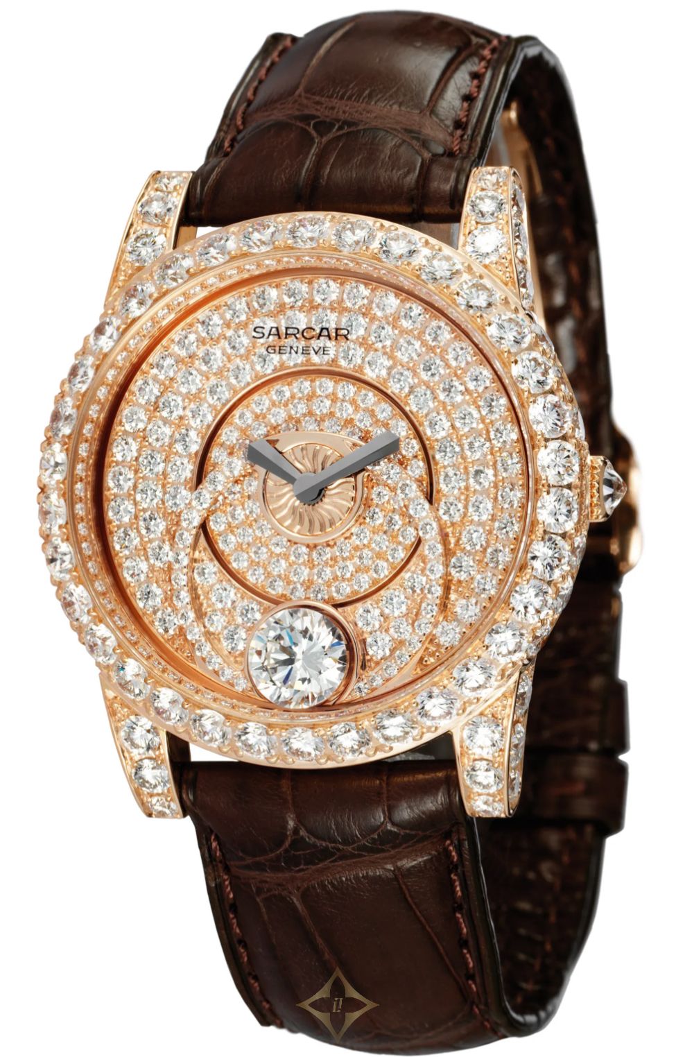Sarcar - Le Solitaire (Gents) - A63008.001 Regular price: SGD$ 276,000.00 Collection Le Solitaire Reference: A63008.001 Movement: Piguet 615 Automatic Case material: White Gold or Rose Gold 18K Case dimensions: Diameter 40 mm Dial: Pave, with 1 rotating Solitaire diamond above 1,00ct Diamonds: 529 Br. – 11.13 Carats Solitaire included Strap: Alligator leather with a gold folding clasp set with Diamonds. 19/16 Glass: Sapphire Crystal Ingeniously inserted within a rotating decor, driven by its own weight, a splendid over one-carat brillant cut diamond spins gracefully above a bed of diamonds. The virtually invisible setting of this solitaire enables light to flood through all its facets. At the slightest turn of your wrist, reflecting all the surrounding stones, itsincandescent glow illuminates each passing moment. The 18k white or pink gold case, the nezel and the dial are hand-set with brillant-cut diamonds, diffusing a sparkling luminosity enhanced by the classical elegance of the crocodile leather strap. ——— Leong Poh Kee Pte Ltd 289 Beach Road, #01-02, Singapore 199552 WhatsApp: +65 6296 9998 Email: enquiry@lpk.com.sg