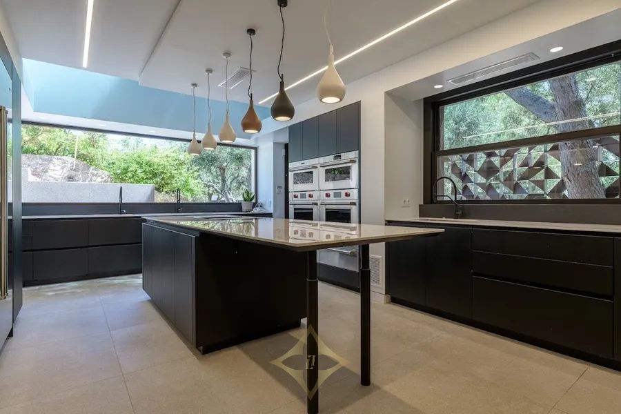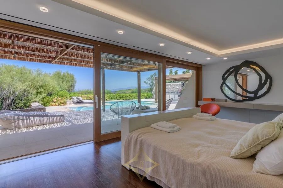 This sublime residence is a villa of incomparable beauty and quality. The main building of the structure was designed by a renowned Greek architect following the architectural style of contemporary minimalism. There is liberal use of stone and wood, giving an earthly feeling to the house, while the large spaces and the open facades allow plenty of natural light inside.