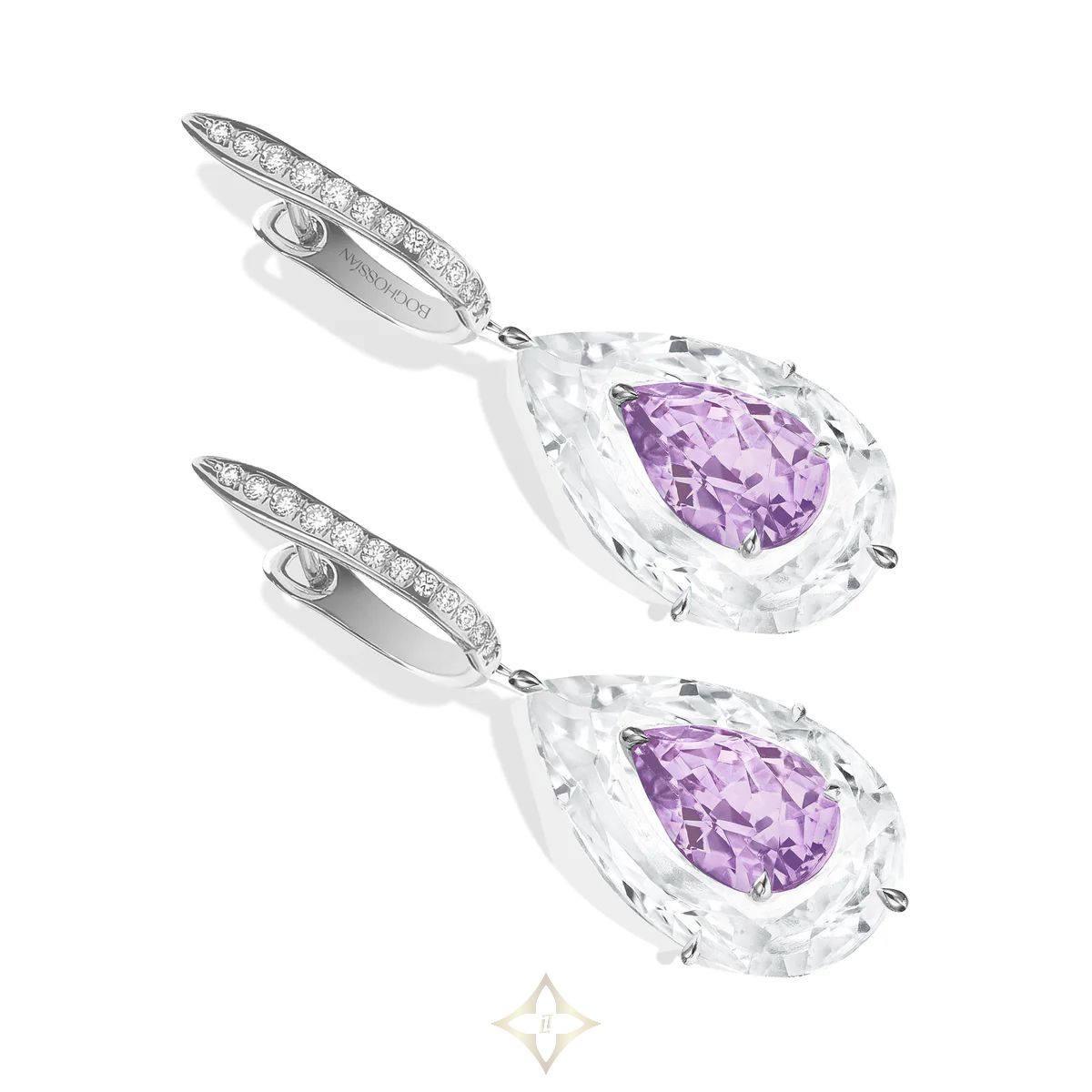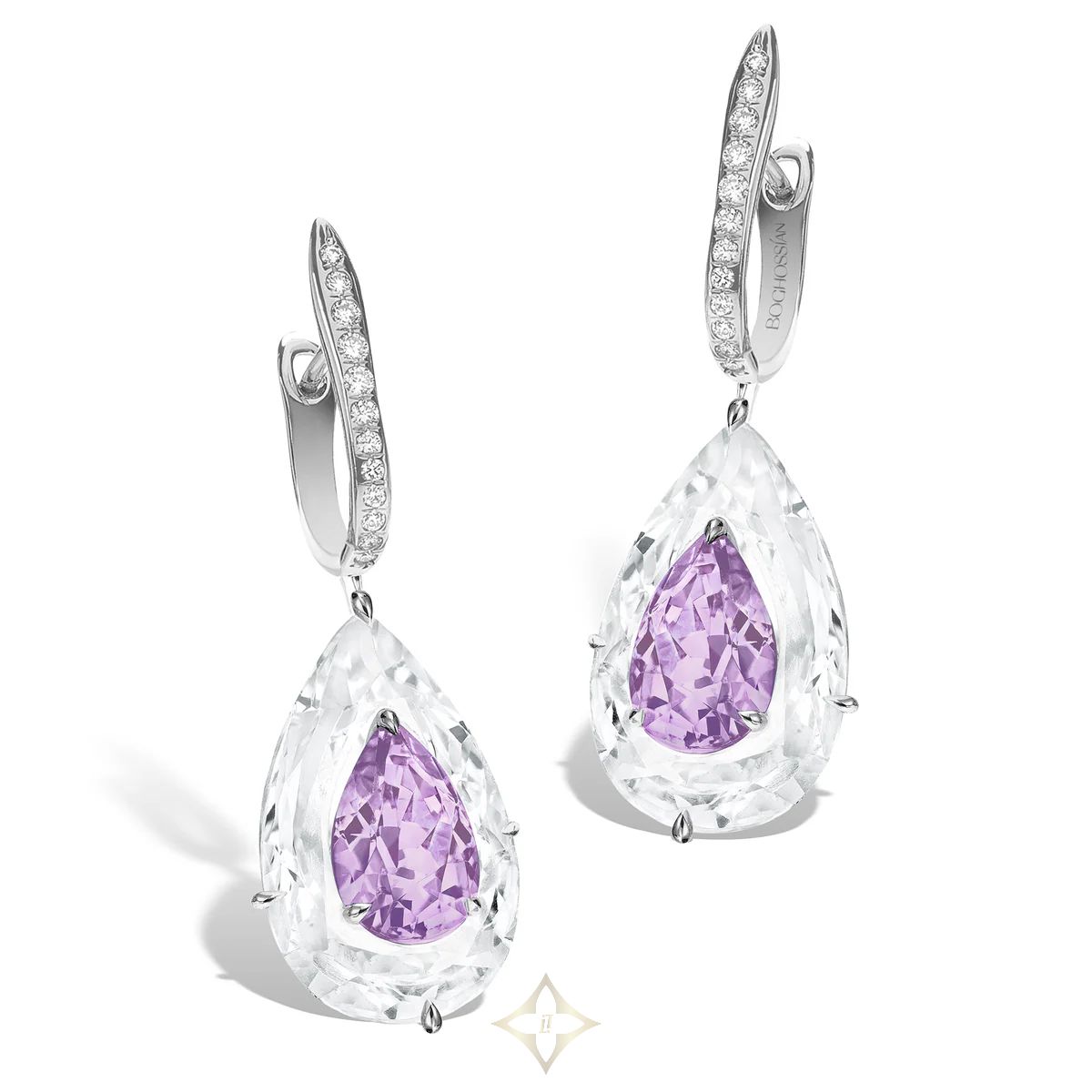 Amethyst is intricately inlaid into rock crystal quartz in these Shine earrings, where vibrant colour meets pure translucence in a luminous display of Boghossian’s signature Inlay technique. Size large.