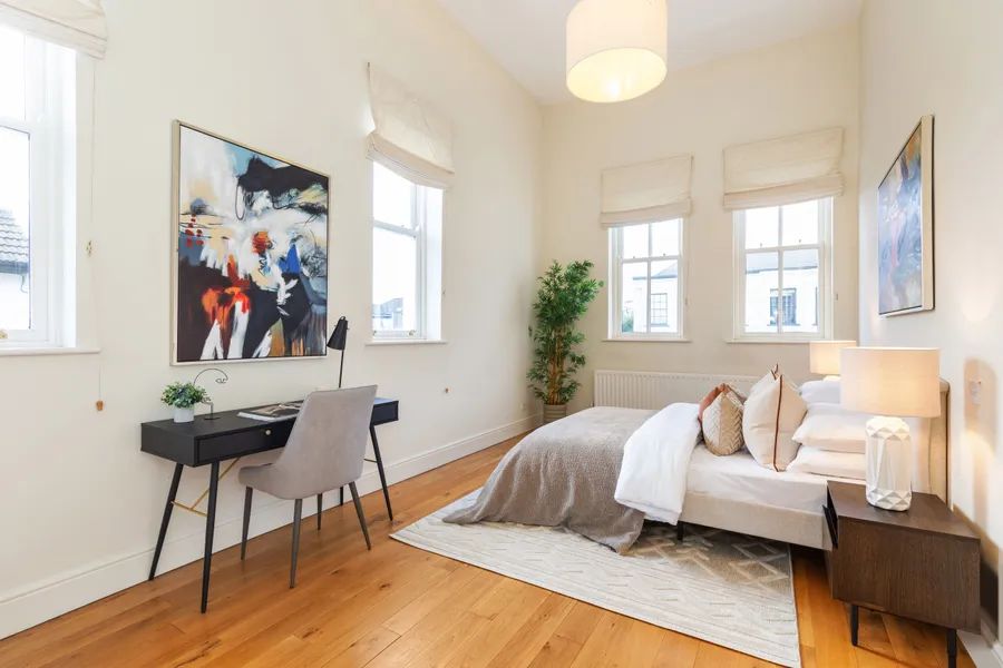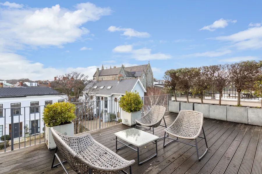 Ascending to the impressive first-floor landing, striking 8.7 ft-high double-glazed doors open into the drawing room, which spans the full width of the property. This room is truly breathtaking, with two deep bay windows offering panoramic sea views across to Howth Head. Also located on the first floor is a luxuriously appointed shower room, beyond which lies the first of the four double bedrooms. The second bedroom on this floor benefits from an ensuite shower room and features a stylish mezzanine level, providing an ideal study or chill-out space for teenagers.