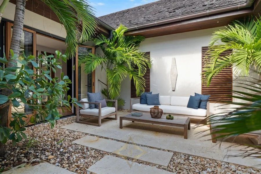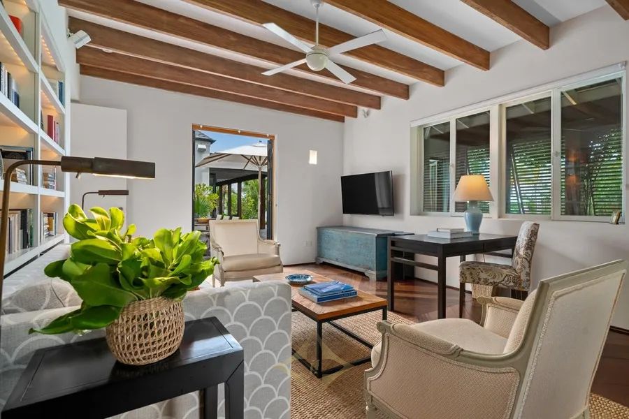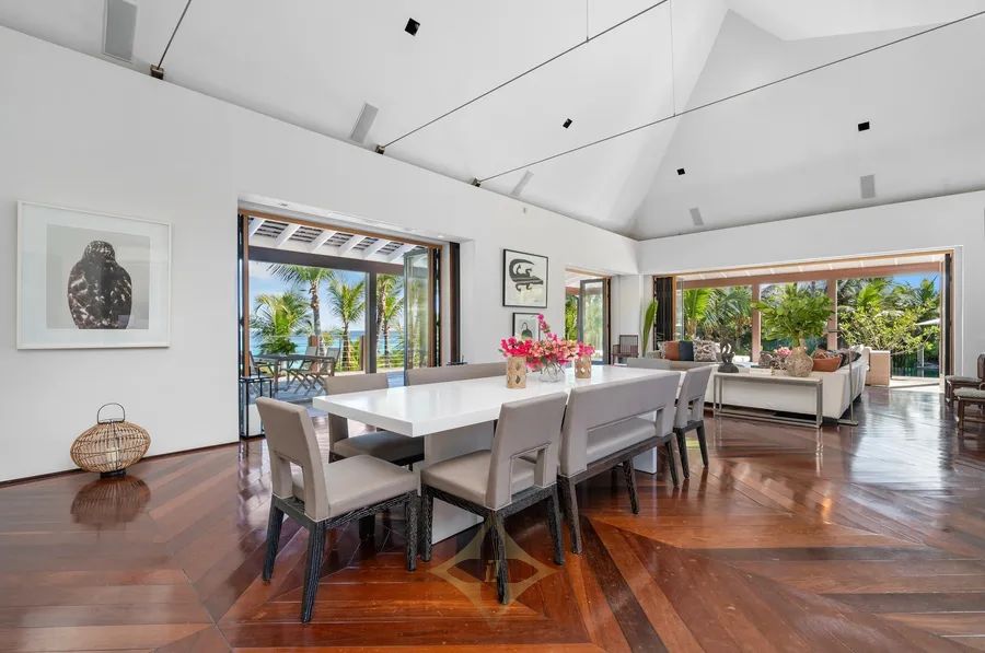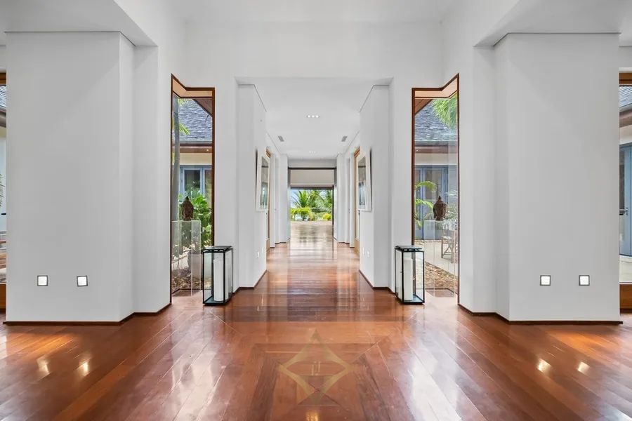 Placed in the serene setting of The Narrows, on a prime stretch of Pink Sands beach, this world-class residence reinterprets Tropical Modernism through a careful balance of architecture and the Harbour Is. landscape. Southern Cross combines a sense of openness with careful attention to spatial intimacy & environmental integration. The core of the design is a multi-courtyard, interconnected outdoor space arrangement promoting ventilation and natural light diffusion. Perfectly set on just under three elevated acres, over 200ft of beachfront above a protective secondary dune, and fully mature impressive landscaping, Southern Cross is a home that is deeply connected to its surroundings. The design’s importance is in creating spaces to invite reflection & foster connection to the natural world and the Bahamian climate. Materials such as South American hardwoods, limestone and polished concrete, copper & brass, doors made in Germany, exemplify the synthesis of global craftsmanship and climate adaptability. Southern Cross, with amazing ocean views is the finest beach estate on Harbour Is.
