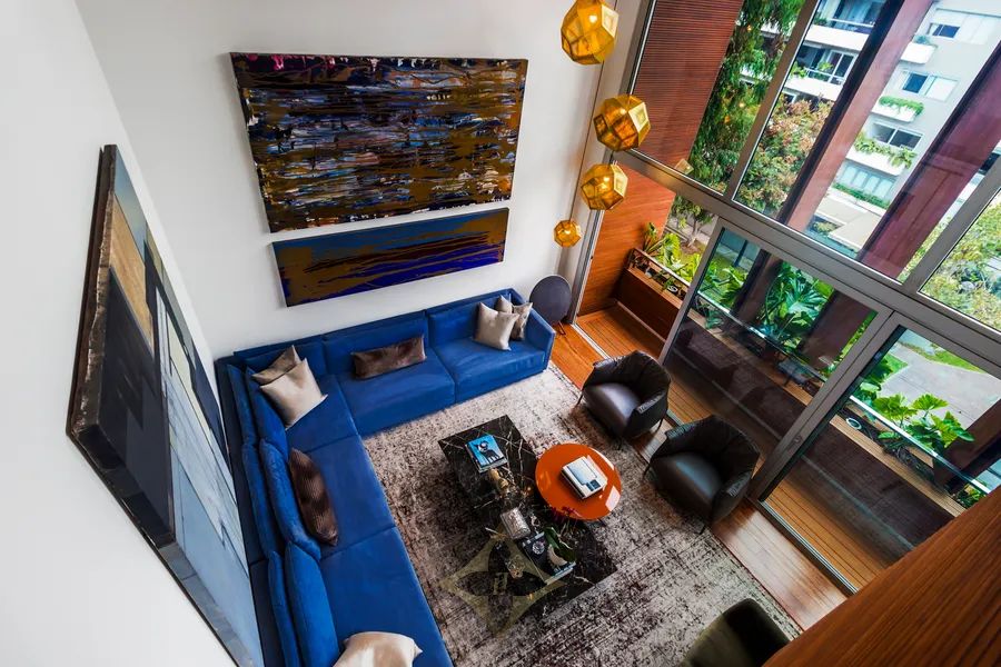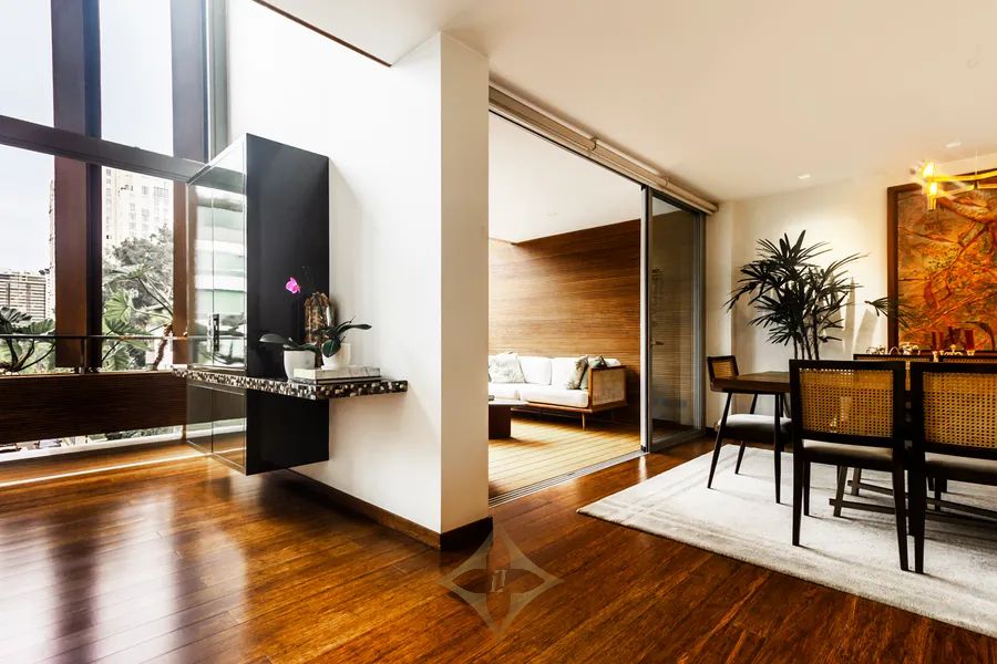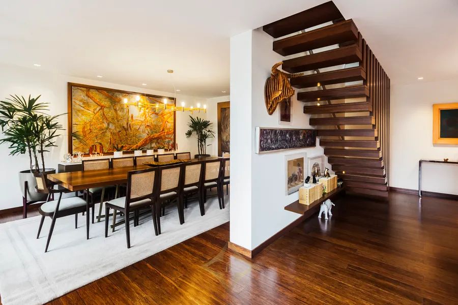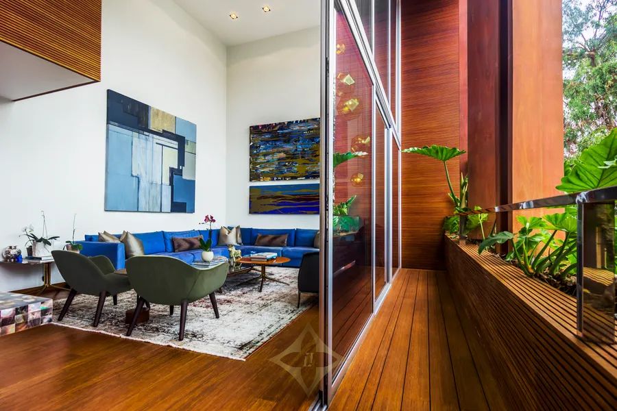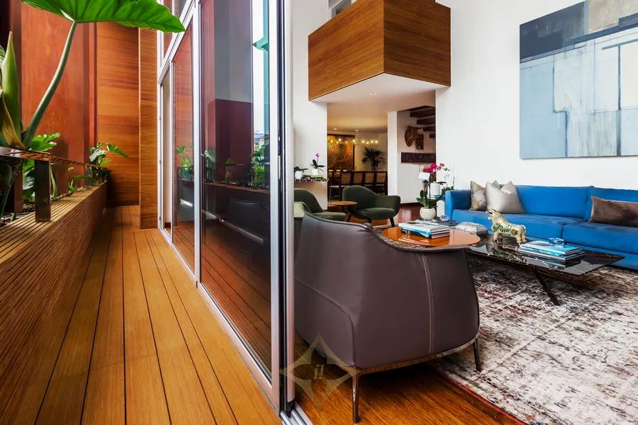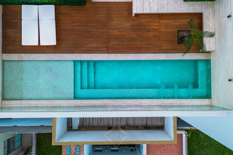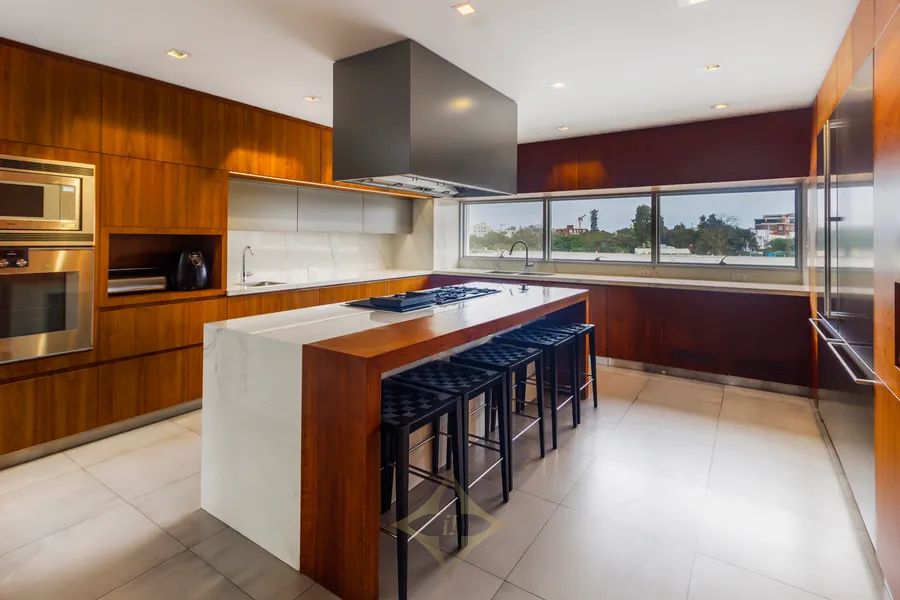 Large double-height foyer with double-height living room with terrace. Separate dining room with large terrace. Gourmet kitchen with central island plus daily dining room. The guest bathroom is a jewel of art, modern, with great design.