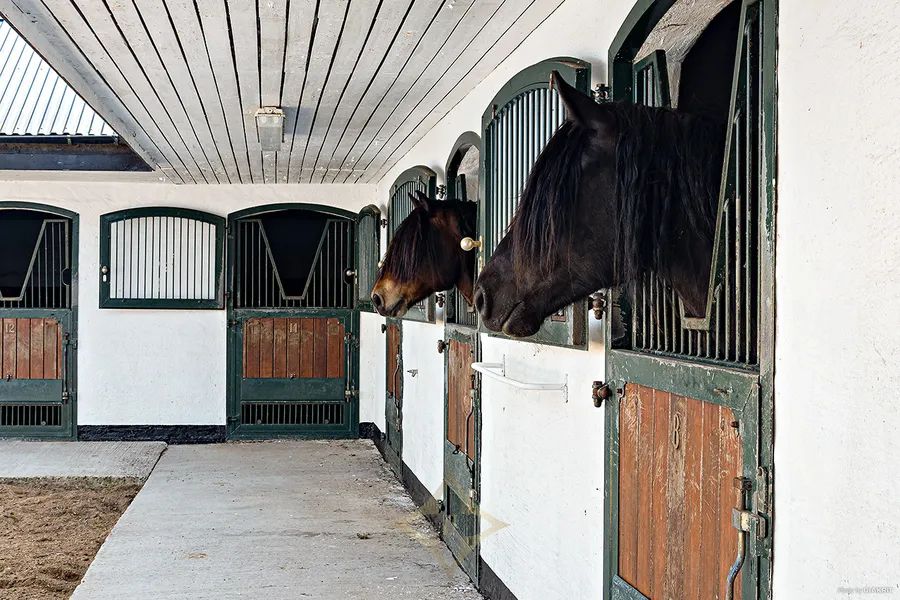 Indoor arena (20x75 m) with fiber footing and automatic irrigation, ensuring optimal conditions year-round
