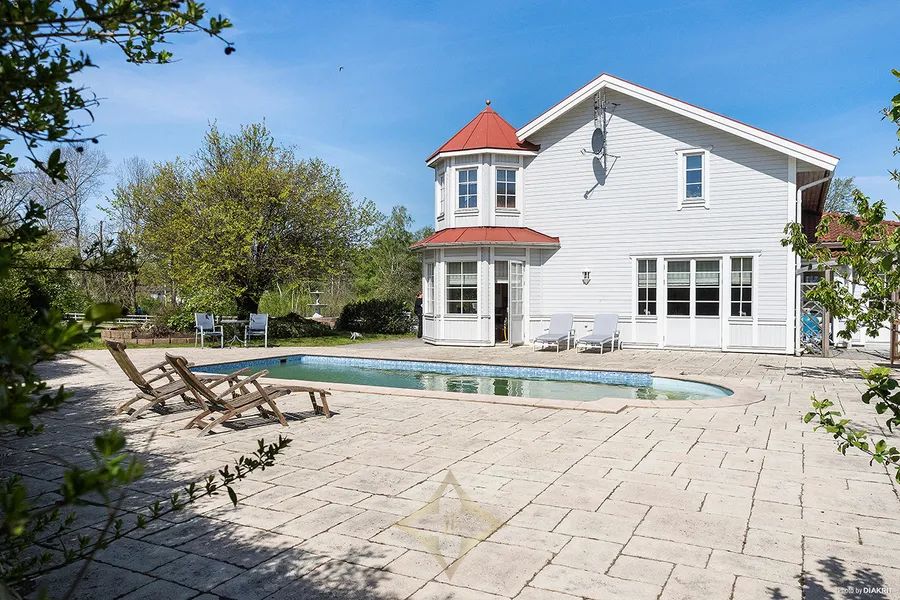 Magnificent main house (390 sqm) featuring classical details, porch-veranda, spacious rooms, and a fully equipped Ballingslöv kitchen in cherry wood