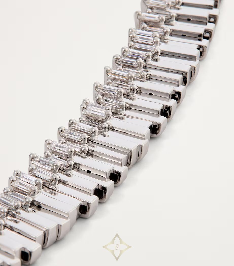 SUZANNE KALAN White Gold and Diamond Golden Age Necklace PRICE: £92,500.00 Instore Purchase Please note, this product cannot be purchased online. The Golden Age of jewellery design. In the same way we regard the Golden Age of history or film, Suzanne Kalan’s collection of the same name is bound to inspire feelings of joy, as the jewellery masterpiece brings together the label’s signature design elements with exciting innovations. This necklace, for example, reflects the collection’s one-of-a-kind mood by turning the silhouettes of baguette-cut diamonds – calling to mind the award-winning Fireworks pieces – into shapes of solid gold. Details CASE Baguette-cut white diamonds (total weight: 10.92ct) STRAP Clasp fastening Presented in a Suzanne Kalan box with travel pouch and branded bag Find in-store in Jewellery, First Floor; Enquiries: +44 (0)20 3036 6174 Model Number: GCP109D-WG 100% 18kt White Gold ——— Harrods Harrods, 87-135 Brompton Rd, London, SW1X 7XL, UK Phone: +44 20 7730 1234 WhatsApp: +44 7860 019465 Email: customer.service@harrods.com