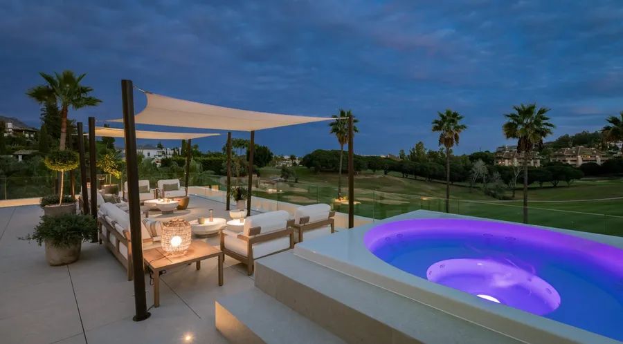 This Outstanding Frontline Golf Villa Is A Masterpiece Of Contemporary Design 5 Beds | 6 Baths | 408 Sqm | 960 Sqm lot Nueva Andalucia, Marbella, Spain PRICE: €5,975,000 This outstanding frontline golf villa is a masterpiece of contemporary design, created for those who value luxury, entertainment and an exceptional golf lifestyle. Upon entering Casa Tesalia, you are welcomed by a sleek and elegant open plan living space where the designer kitchen flows seamlessly into the dining and lounge areas. Floor to ceiling glass doors flood the interior with natural light and open up to breathtaking views over the Los Naranjos Golf Course. On the main level you will find four spacious en suite bedrooms, each with its own private terrace. The impressive master suite of nearly 40 m² features a walk in closet and a designer bathroom integrated into the bedroom space, creating a refined and luxurious atmosphere. The outdoor area offers beautifully designed terraces, multiple lounge areas and elegant water features that blend perfectly with the swimming pool. A private buggy garage provides direct access to the golf course. The rooftop terrace is designed for unforgettable moments, featuring an outdoor kitchen, dining and lounge areas, an outdoor cinema and a second swimming pool, all with spectacular views over the golf course and surrounding valley. The basement includes a fully equipped gym with dark wood finishes and a stylish home office. The villa offers five bedrooms, five bathrooms plus a guest toilet, over 400 m² built area, 227 m² of terraces and a 908 m² plot. At Max Brokers, we offer more than properties. We provide a complete and seamless real estate experience across the Costa del Sol, guiding you from property selection to legal and tax advice, ensuring a secure and efficient purchase aligned with your goals. Property type: Villa Year built: 2025 Price/sqm: $16,929 ———