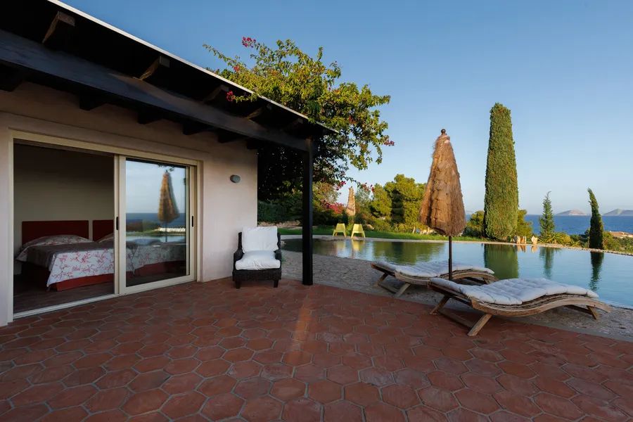The second villa, thoughtfully designed across 360 sqm, features five elegant bedrooms and serene spaces that ensure complete comfort and privacy for guests. Both villas open onto sweeping terraces, private pools, and lush landscaped grounds, all oriented toward uninterrupted sea views. Premium amenities—including a fully equipped gym and sauna—complete the atmosphere of discreet, modern luxury.