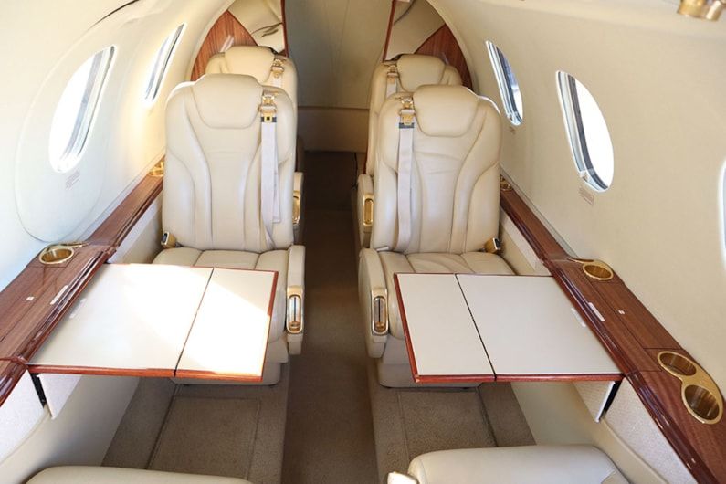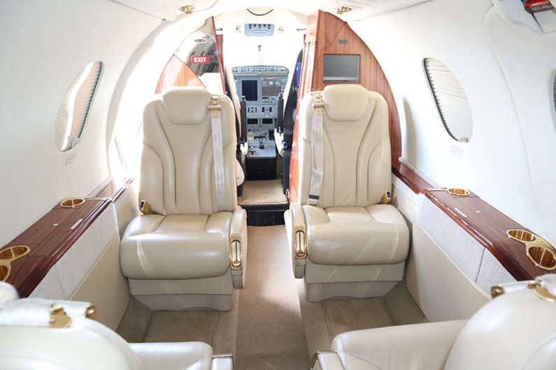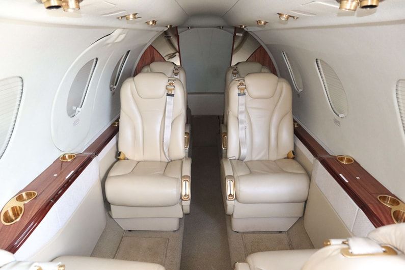 The Interior Features Tumbleweed Shimmer Fabric, Sand Leather Chairs, and Rembrandt Frieze Carpet. The Cabinetry Laminate is Bronze Ribbon Mahogany with Brass Satin Brushed Plating.