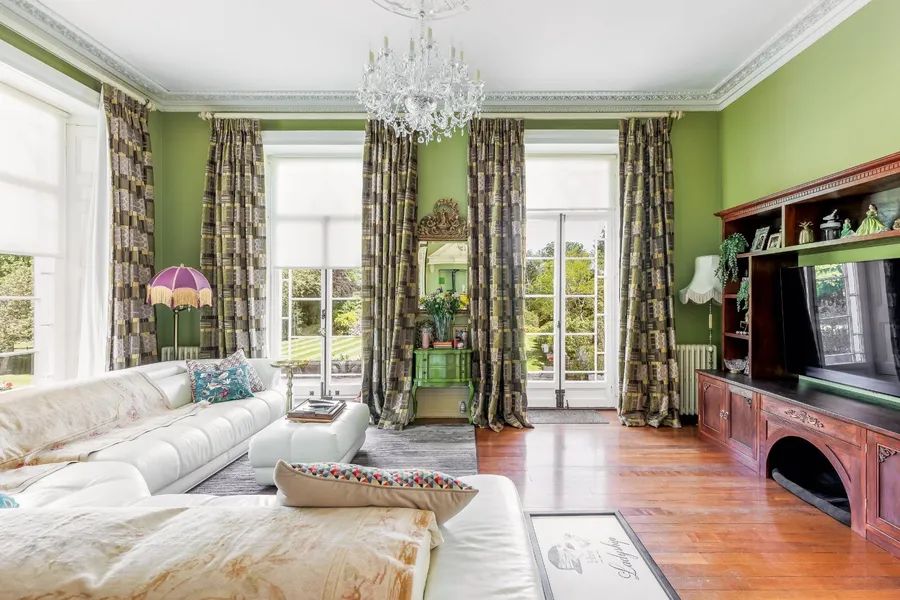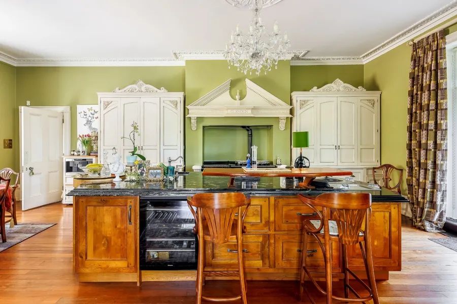 The additional accommodation includes two apartments in the eastern wing of the house, as well as one on the second floor. The two east wing apartments share a ground-floor entrance, with the one-bedroom apartment on the ground floor featuring an open-plan sitting room and kitchen, one double bedroom and an en suite bathroom, while the upstairs apartment has two bedrooms, a sitting room opening onto a balcony, a kitchen and a bathroom. The second floor apartment also offers two bedrooms, a well-proportioned sitting room, a kitchen and a bathroom.