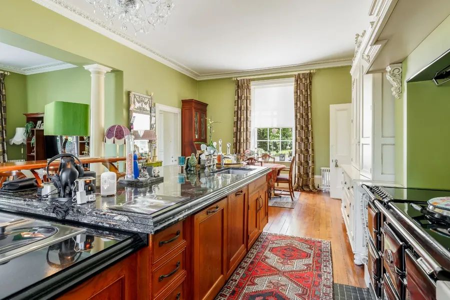The welcoming reception hall has wooden parquet flooring and a turned staircase leading to the light-filled, galleried first-floor landing. Ground floor reception rooms include the morning room with its floor-to-ceiling sash windows, the comfortable snug and the formal dining room, while the heart of the main house is the open-plan kitchen and day room. This light, spacious living and entertaining area features French doors and bi-folds opening onto the gardens, as well as a kitchen fitted with bespoke wooden cabinetry. There is also a gym, a study, while an internal door leads to the rear lobby and two of the self-contained apartments. The basement provides further living space with the parlour and the former kitchen, as well as a wine cellar, gun store and other storage space.