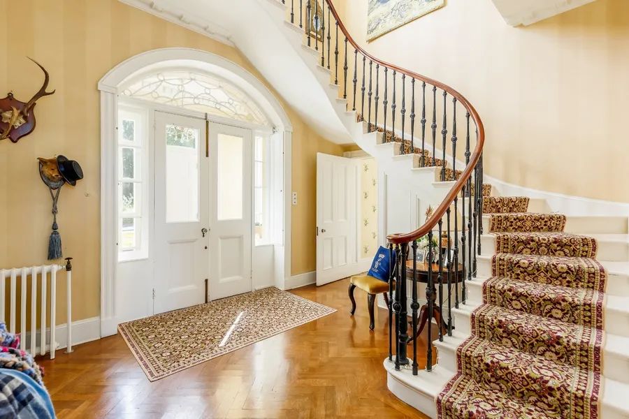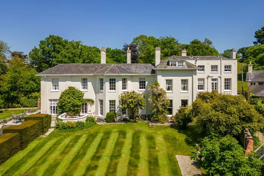Glendon is an impressive Grade II listed Georgian house with its white rendered elevations and beautifully landscaped gardens and grounds. The property is arranged as a grand main house and three self-contained apartments, totalling 13 bedrooms and nine attractive reception rooms. Attractive period details include large sash windows, ceiling roses and cornicing, ornate chandelier light fittings and original fireplaces, as well as impressive bespoke fittings and traditional décor.