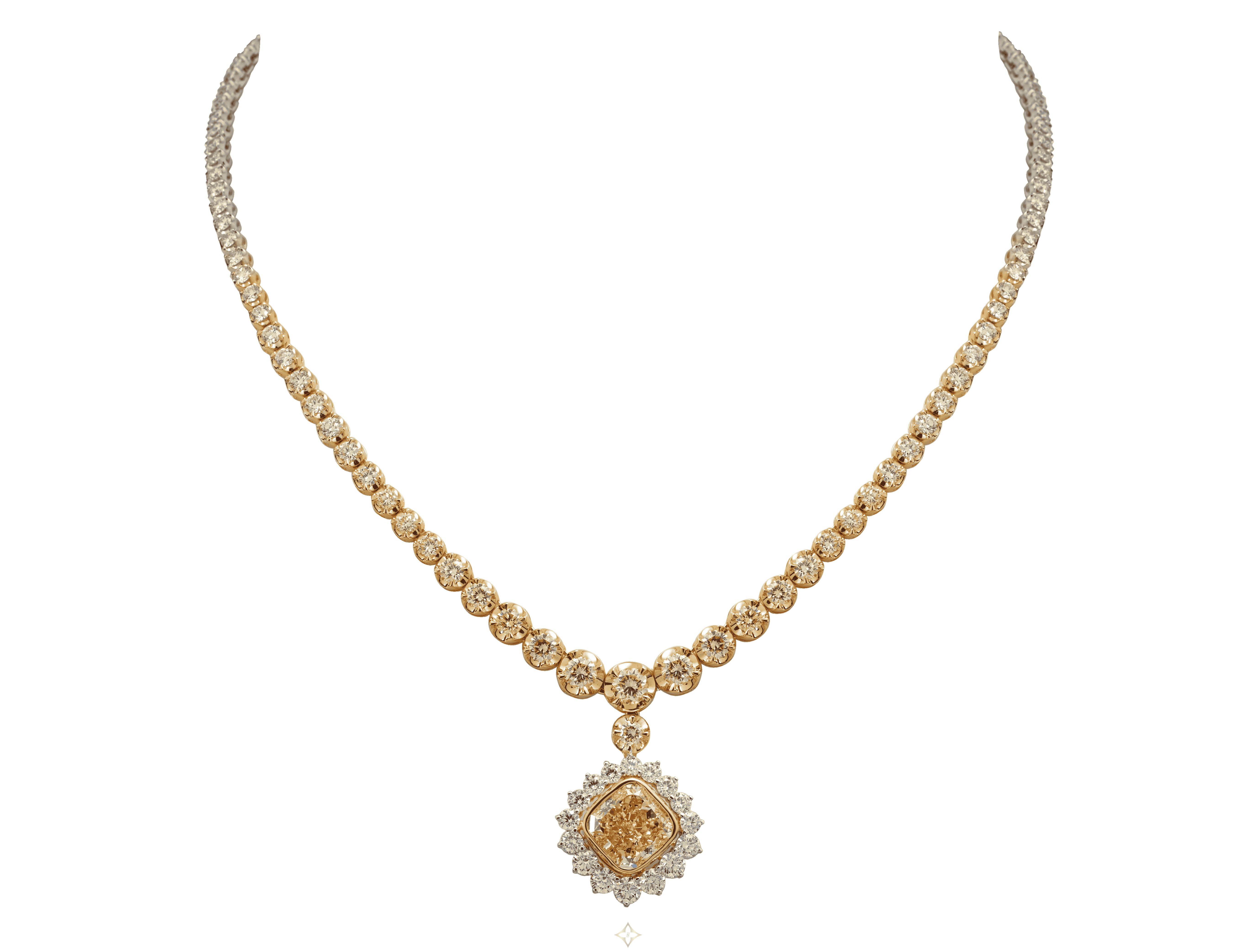 Crafted by our master goldsmiths, every detail of this design has been meticulously considered. Diamonds of exceptional quality extend from the central pendant to adorn the neck, gradually transitioning in size and colour from yellow to dazzling white. A statement of elegance and artistry, the Africa Glory reflects Africa’s beauty and spirit, serving as a striking symbol of refined sophistication.