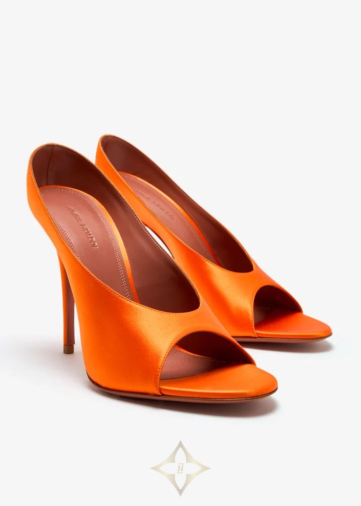 The Anok slippers by Amina Muaddi are all about glamour and attitude. Set on a striking 105mm stiletto heel, this open-toe silhouette is crafted in luxe satin that catches the light with every step.