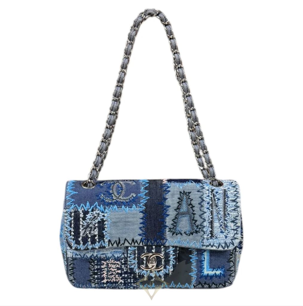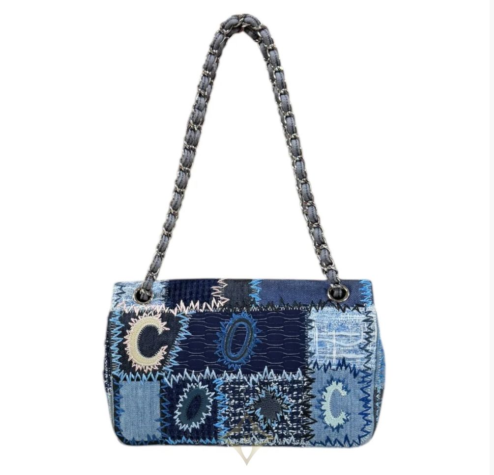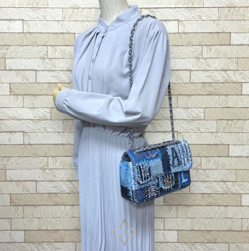 CHANEL CHANEL PATCHWORK SHOULDER BAG DENIM BLUE LADIES USED