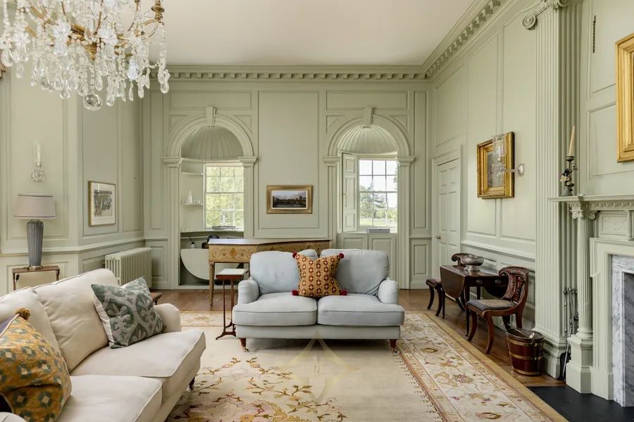 The main house, dating from circa 1560, has been meticulously refurbished to a high standard and is presented in move-in condition. Its unique ’grange plan’ design features a square layout around a central courtyard, rising three storeys with staircases at each corner. The first-floor reception rooms, added in the 17th century, are notably spacious and filled with natural light.