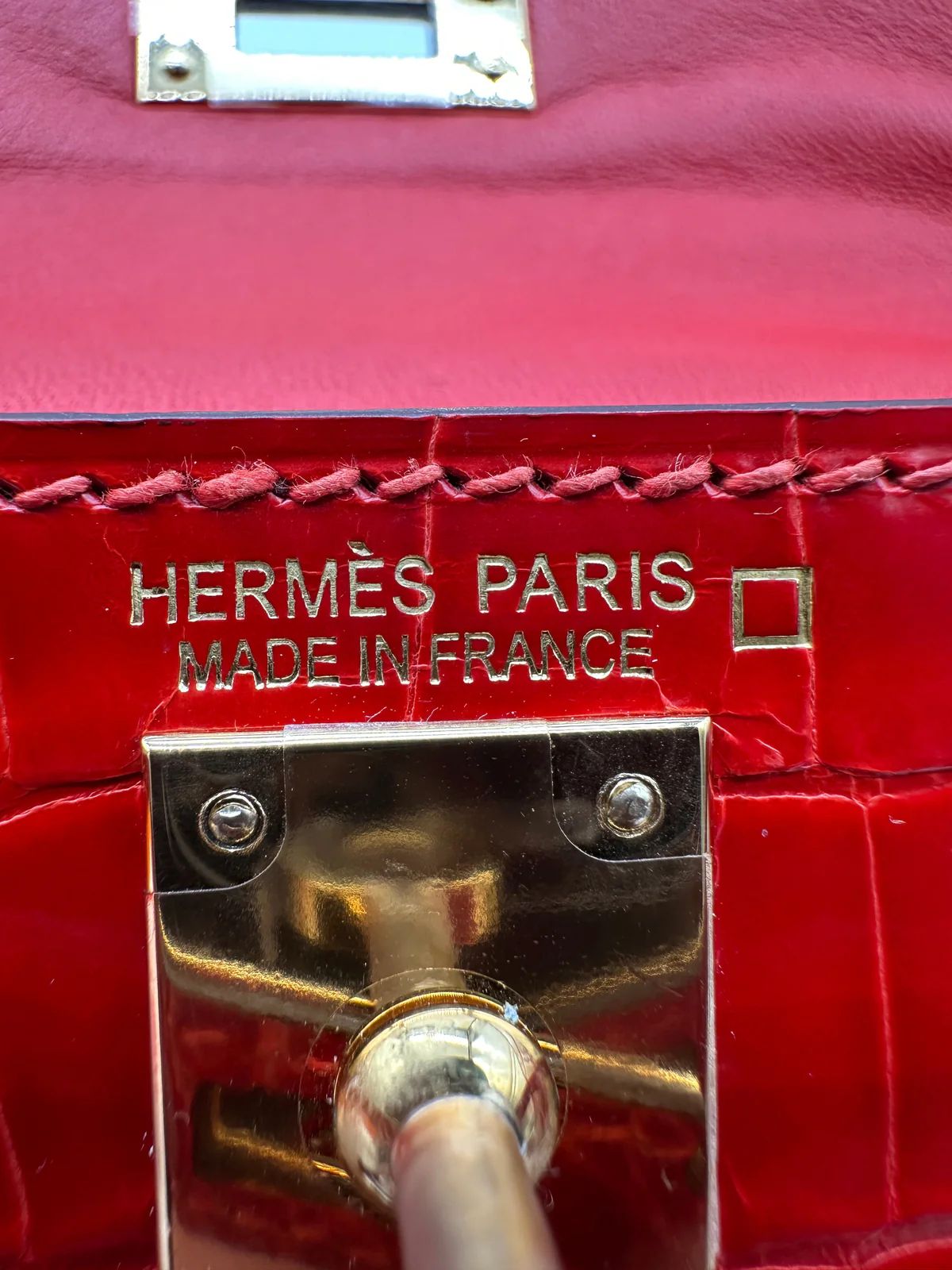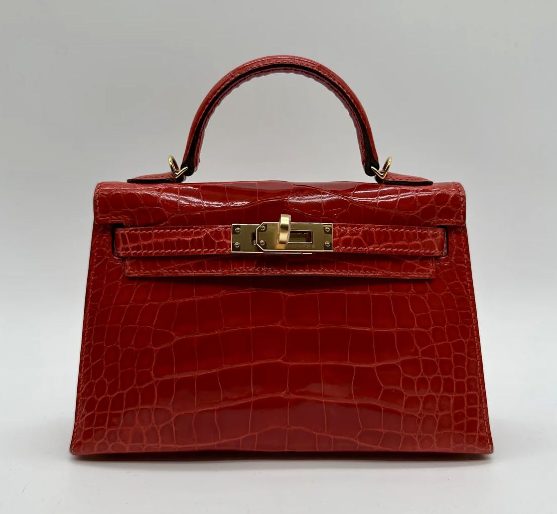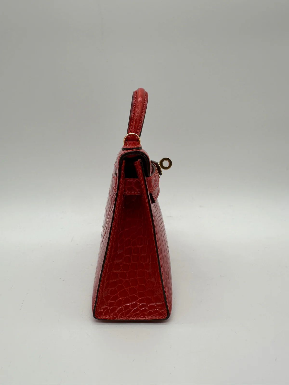 HERMÈS MINI KELLY GERANIUM SHINY ALLIGATOR GOLD HARDWARE
