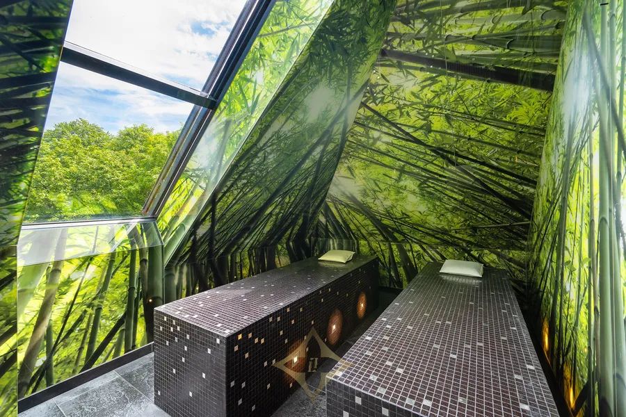 with en suite bathroom, a wellness area with steam bath and panorama sauna as well as a guest WC.