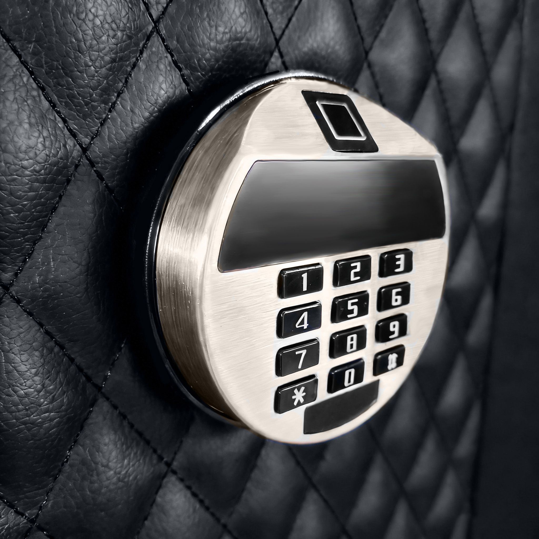Unlike traditional cold metal safes, the exterior is wrapped in premium microfiber leather, finished with an elegant diamond quilting pattern inspired by luxury leather craftsmanship. The result is a refined furniture-grade appearance that blends seamlessly into private studies, walk-in closets, and collector rooms.