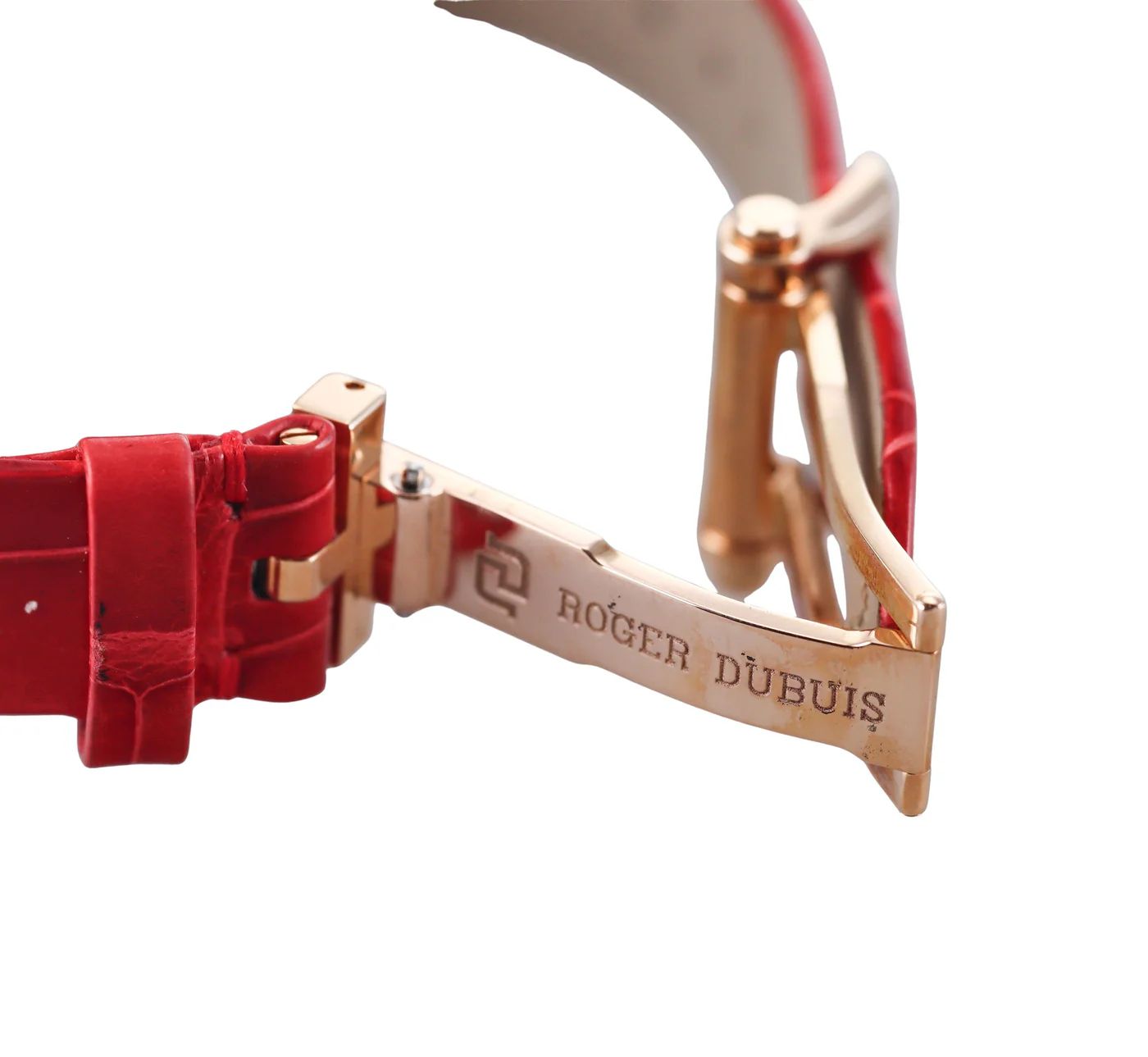 ROGER DUBUIS VELVET ROSE GOLD DIAMOND RED LEATHER STRAP WATCH DBVE0073