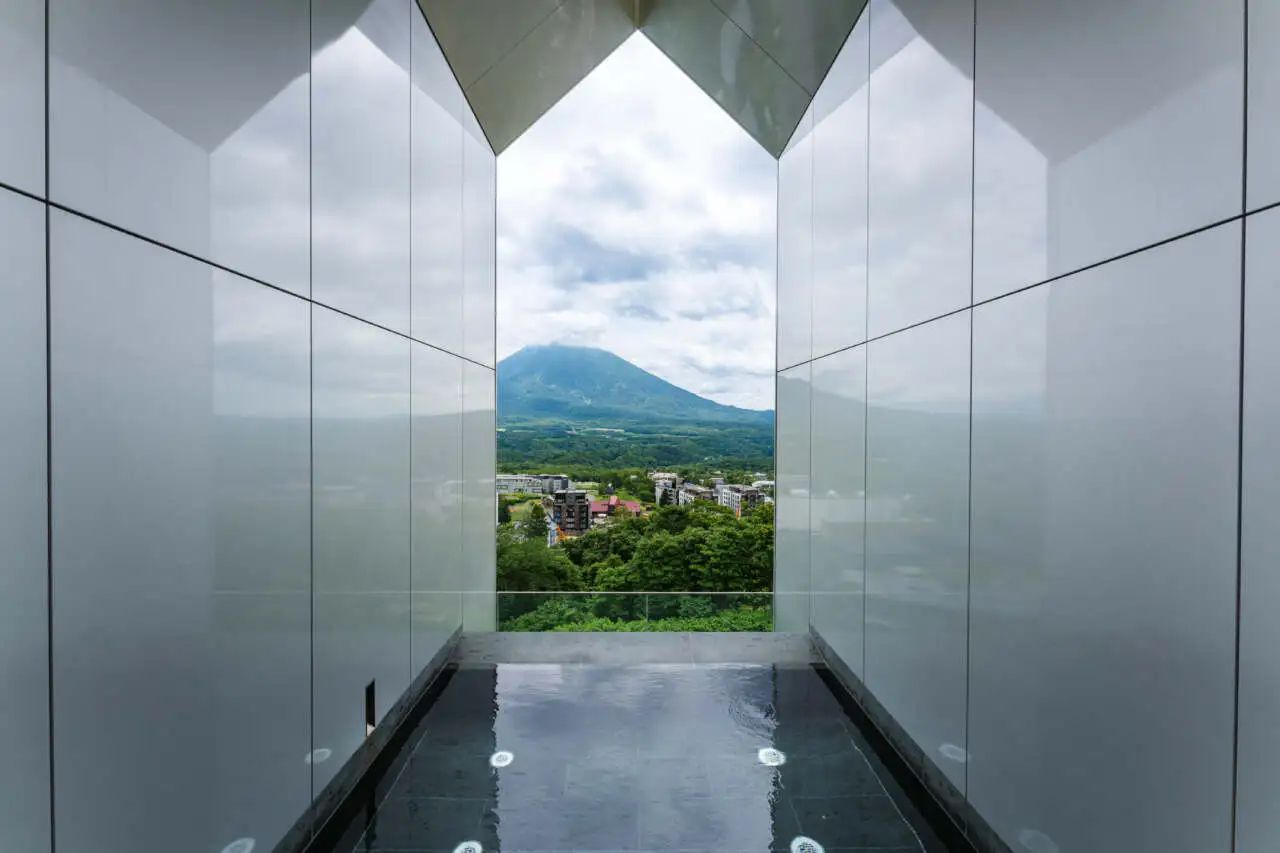Four infinity onsen baths on the sixth floor with breathtaking Mt. Yotei views
